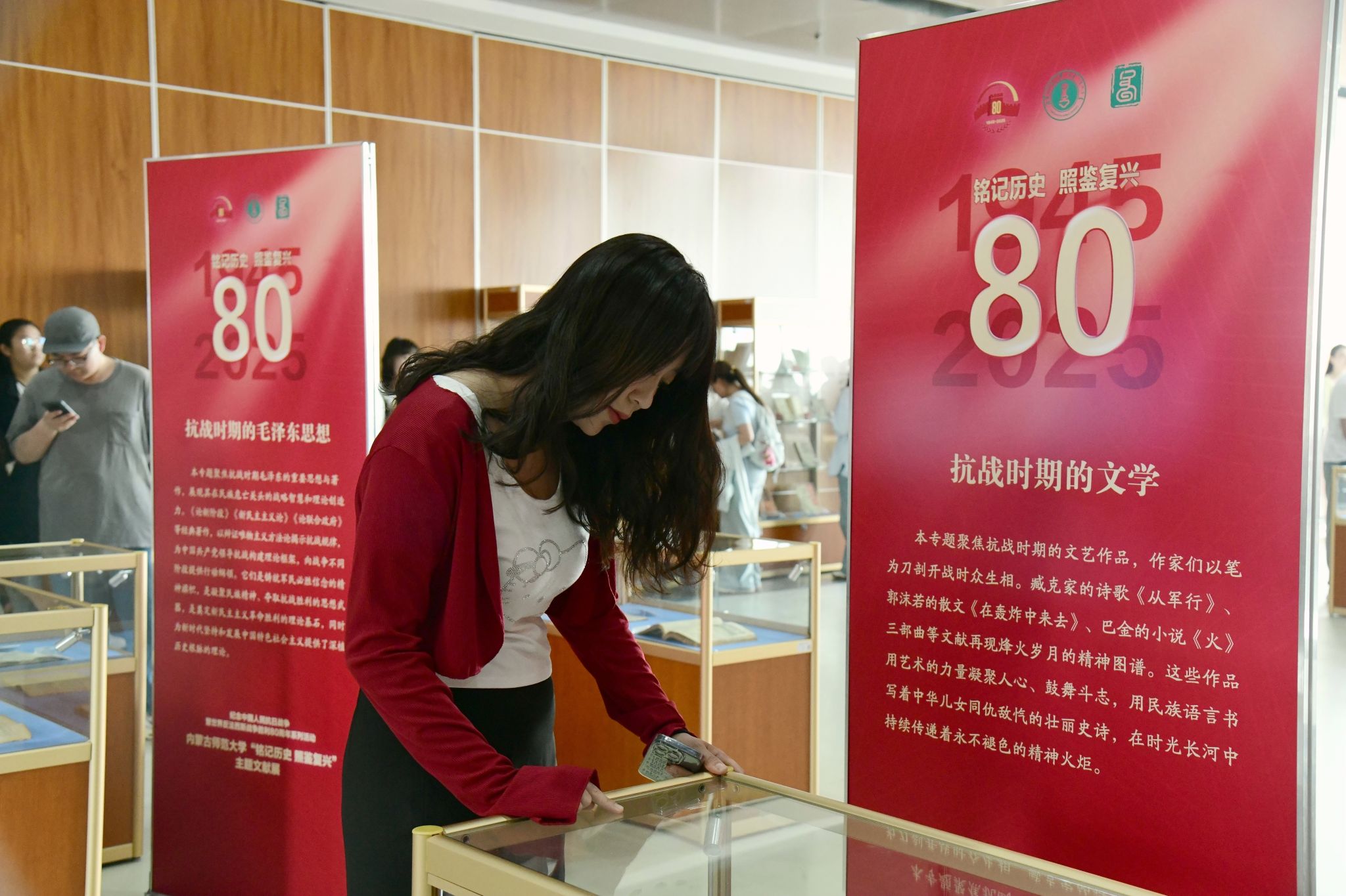本网讯 5月29日下午,pp电子在图书馆盛乐馆举办纪念中国人民抗日战争暨世界反法西斯战争胜利80周年系列活动——“铭记历史 照鉴复兴”主题文献展开展仪式,相关部门、学院负责同志及师生代表200余人参加活动。