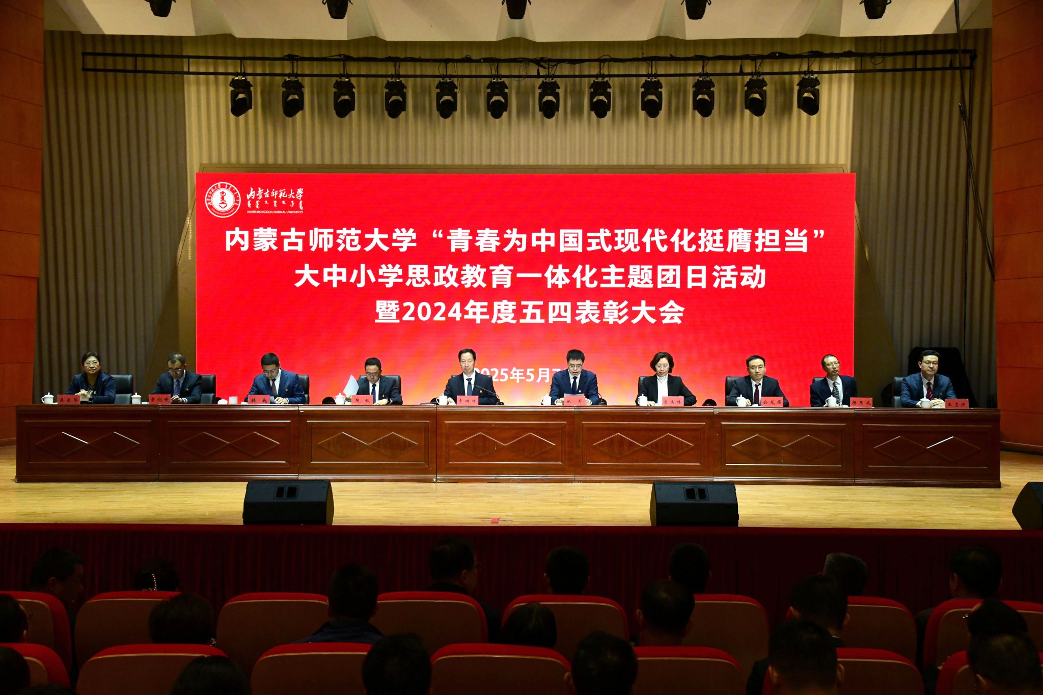 本网讯 5月7日,pp电子官方网站“青春为中国式现代化挺膺担当”大中小学思政教育一体化主题团日活动暨2024年度五四表彰大会在盛乐校区音乐厅举行。党委书记李树林出席大会并讲话。党委副书记、校长张军主持大会。党委副书记斯钦,副校长贾美林,党委委员、副校长韩巍、公茂果、景剑峰、杨玉成出席大会。各部门负责同志,各学院党委(党总支)书记、副书记、团学干部、获奖师生以及各学院青年师生代表参加大会。