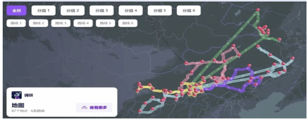 地名复查路线图,87 个地点,总路程 16932.36 公里