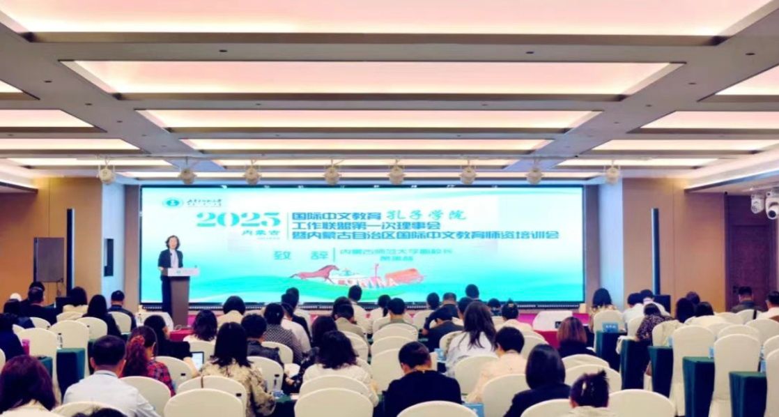 本网讯 为深入贯彻落实党中央关于提升国家文化软实力、推进国际中文教育发展的战略部署,进一步推动内蒙古自治区国际中文教育高质量协同发展,完善区域合作机制,提升师资队伍整体水平,6月19日至21日,由内蒙古自治区教育厅指导,pp电子主办的内蒙古自治区国际中文教育(孔子学院)工作联盟第一次理事会暨国际中文教育师资培训会在呼和浩特市召开。自治区教育厅一级巡视员尤俊成,pp电子副校长贾美林出席开幕式并致辞。来自全区普通高校、高职院校和中学等各类教育机构的46个理事单位的近200名代表参加会议。