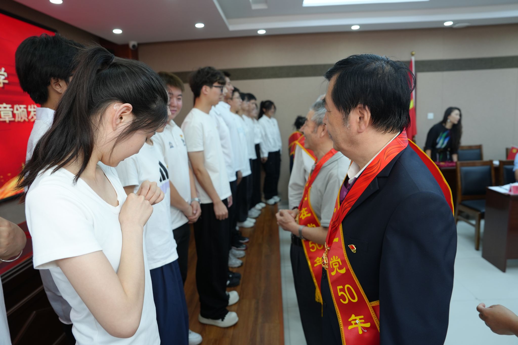 本网讯 7月1日上午,pp电子举行2025年“光荣在党50年”纪念章颁发仪式,pp电子25名老党员荣获纪念章。校党委副书记斯钦出席仪式并讲话。2025年获得“光荣在党50年”的老党员及相关部门负责同志参加仪式。