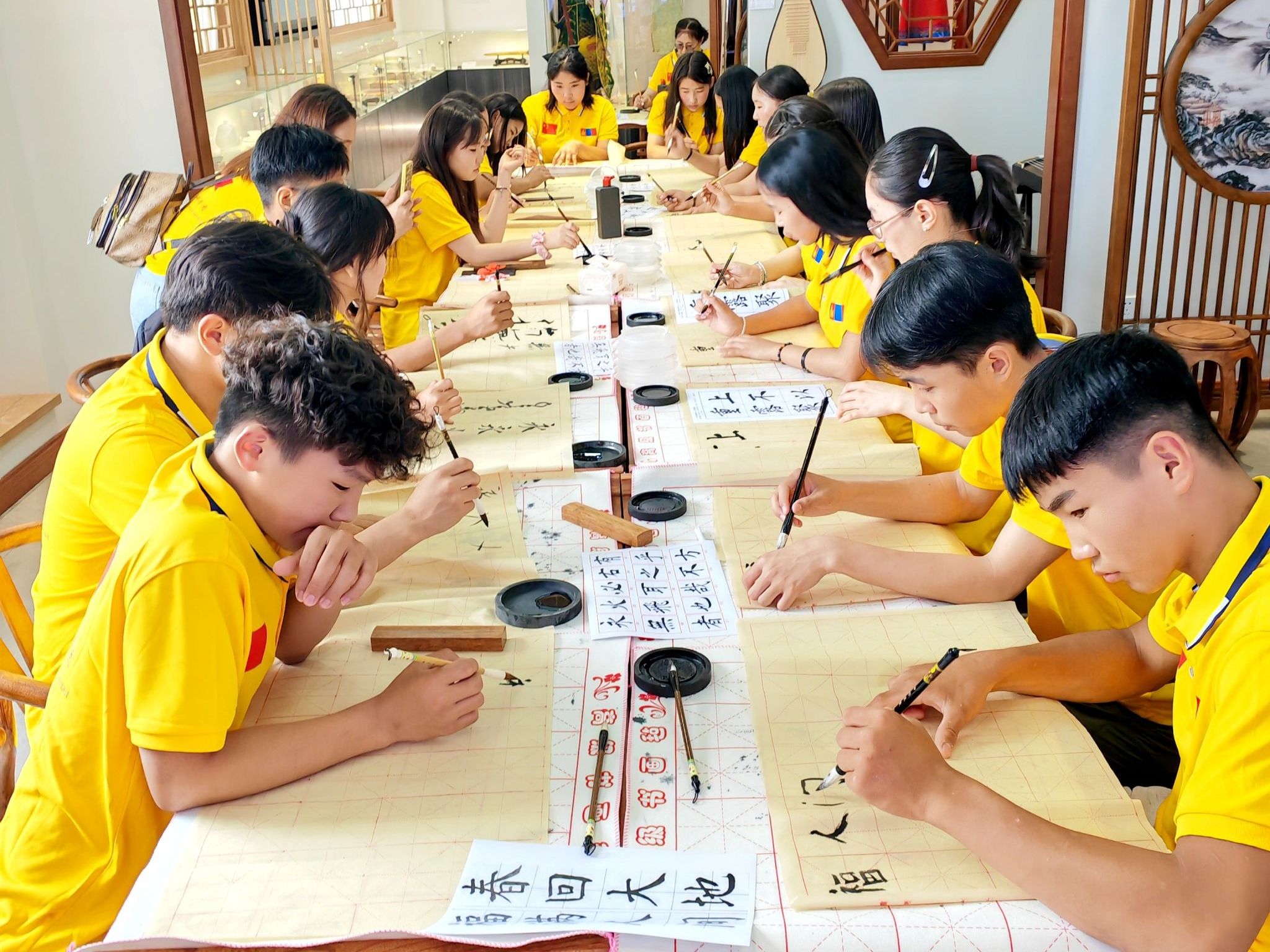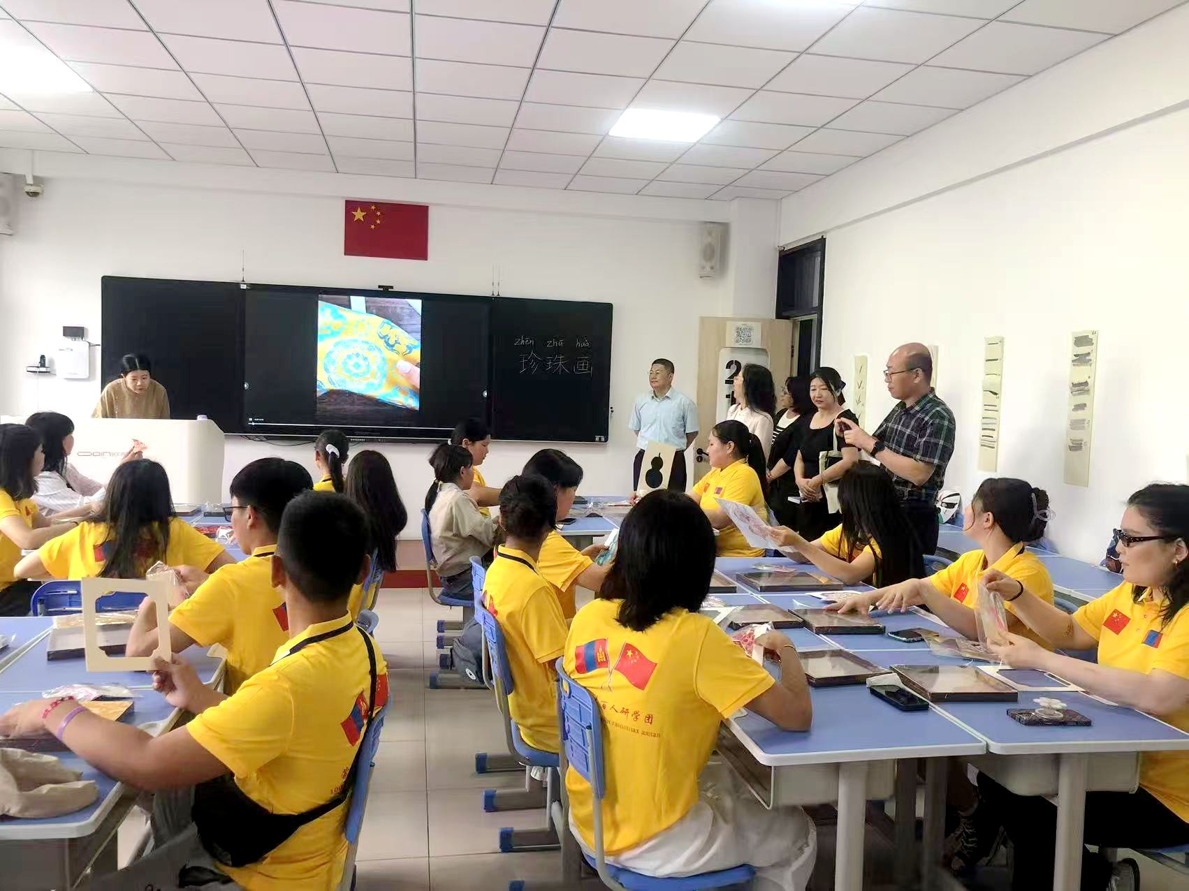 研学团先后参观了pp电子生物标本馆与科学技术史博物馆,并在相关单位精心安排下,深入留学生教室、文化长廊,沉浸式体验传统漆扇制作、和林格尔非遗剪纸、非遗珍珠画、香包制作、书法、汉服装造等丰富多元的文化活动。这些活动不仅让蒙古国师生们在互动中感受到了中华文化的多元与包容,也为中蒙青少年搭建起一座文化交流的桥梁。