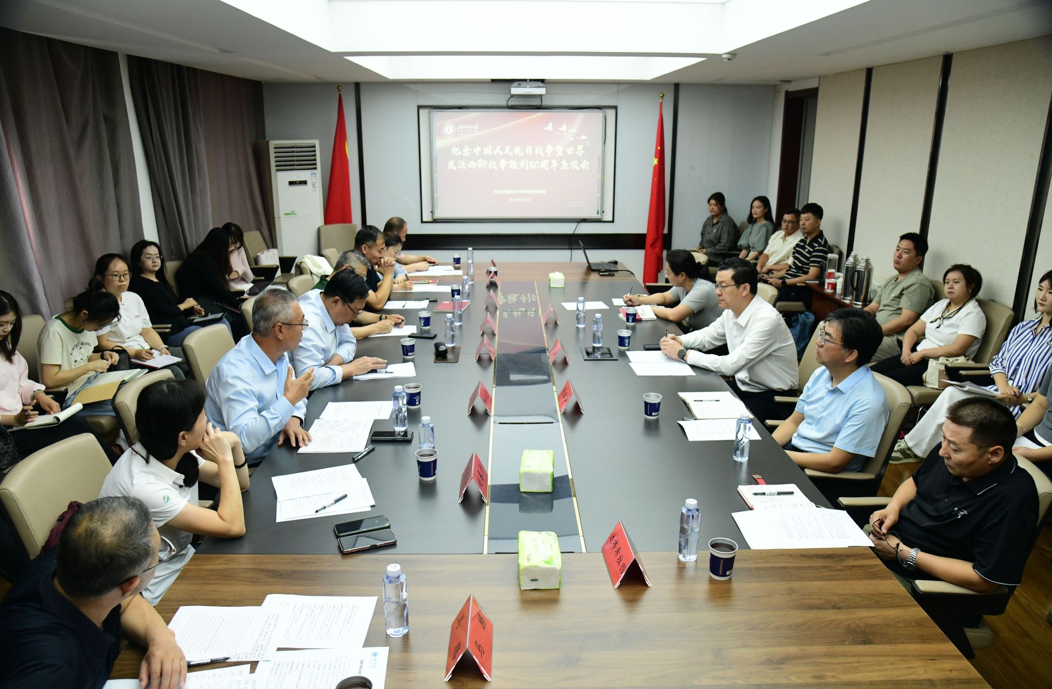 本网讯 9月4日上午,由pp电子官方网站中共党史党建学院主办的“纪念中国人民抗日战争暨世界反法西斯战争胜利80周年座谈会”在勤政楼509会议室举行。会议以“铭记历史、缅怀先烈、珍爱和平、开创未来”为主题,旨在深入学习贯彻习近平总书记关于纪念中国人民抗日战争胜利的重要讲话精神,弘扬伟大抗战精神,凝聚民族复兴力量。