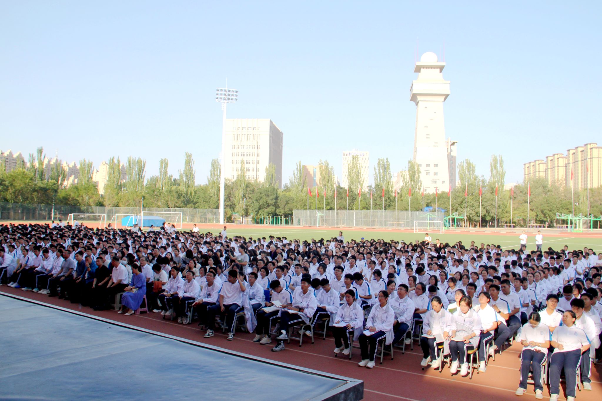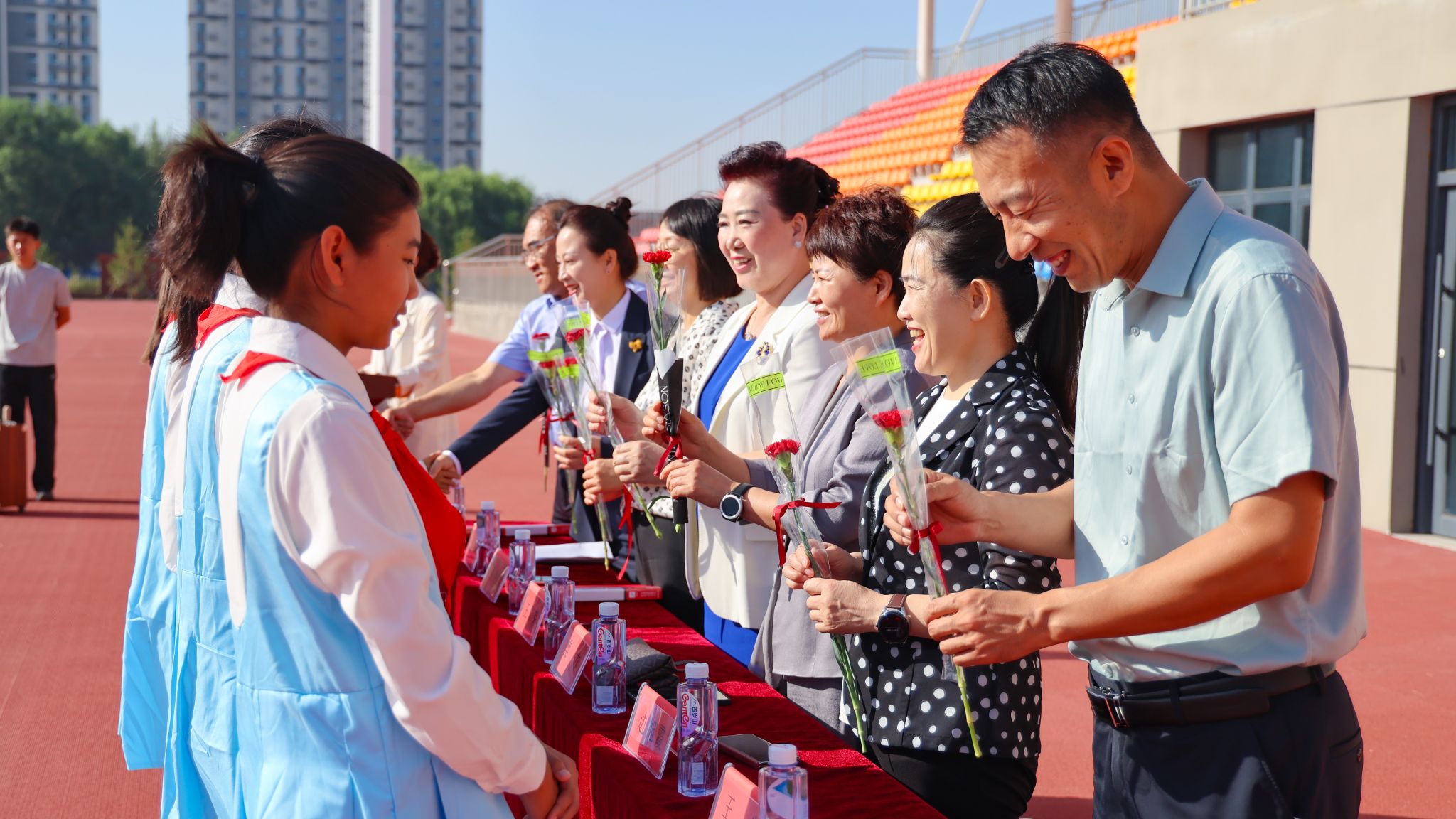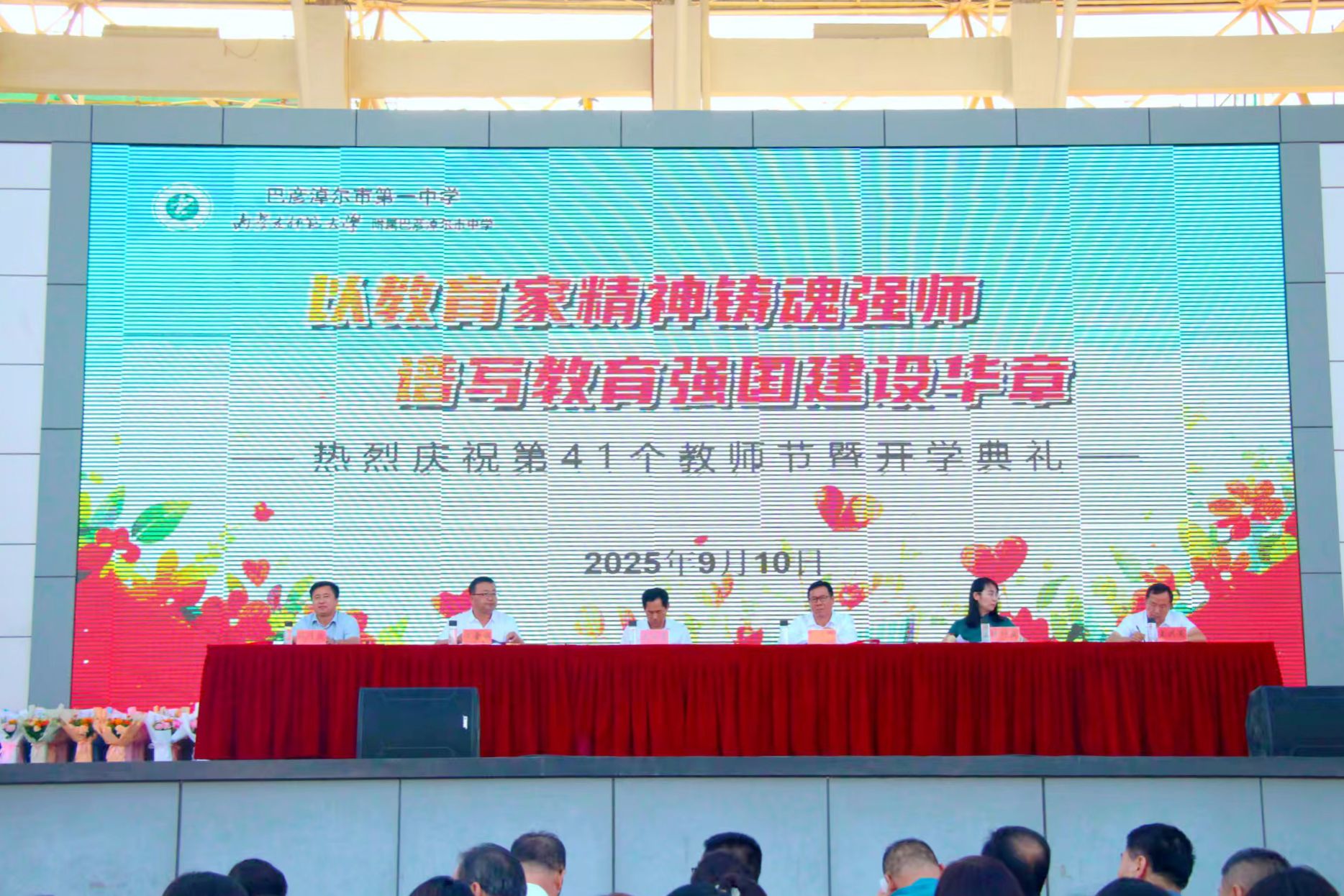 9月10日下午,pp电子官方网站附属巴彦淖尔市中学全体师生在体育场共同举行以“以教育家精神铸魂强师 谱写教育强国建设华章”为主题的第41个教师节庆祝活动。活动现场,对优秀班主任、先进班集体、优秀教师、优秀教育工作者、优秀科室、优秀学科组等先进集体与个人进行了表彰,以此弘扬高尚师德,凝聚校园正能量,共贺教师佳节。