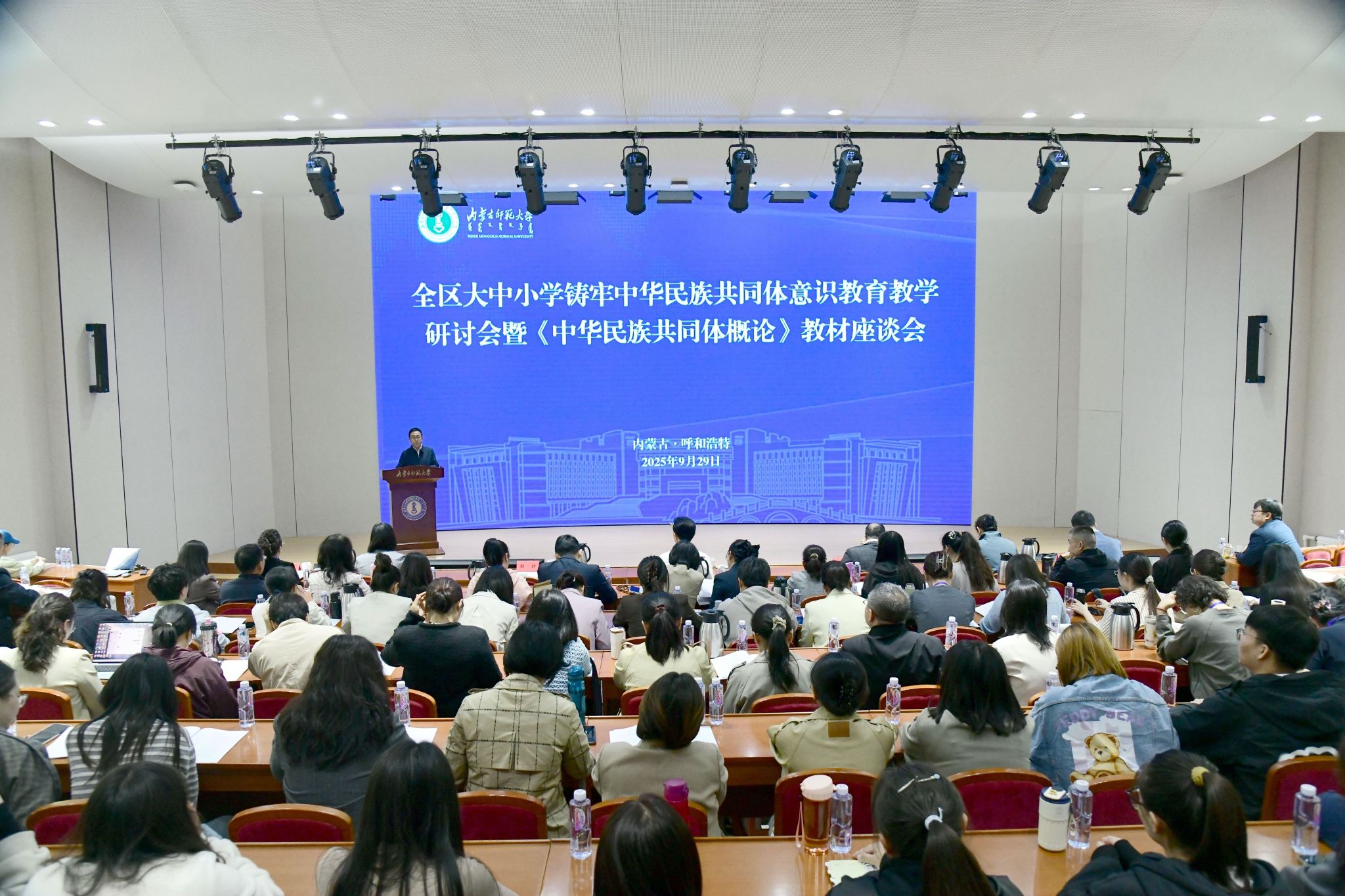 9月29日,由自治区民委、教育厅联合主办,pp电子官方网站承办的全区大中小学铸牢中华民族共同体意识教育教学研讨会暨《中华民族共同体概论》教材座谈会在pp电子官方网站顺利召开。全区各高等院校、中小学教师代表共计100余人齐聚一堂,以教材为纽带、以教学为抓手,共同探索铸牢中华民族共同体意识教育的实践路径,提升《中华民族共同体概论》课程教学质量。自治区民委党组成员、专职委员、二级巡视员阿拉塔,pp电子官方网站党委副书记斯钦分别致辞。自治区民委、教育厅相关处室负责人参加会议。