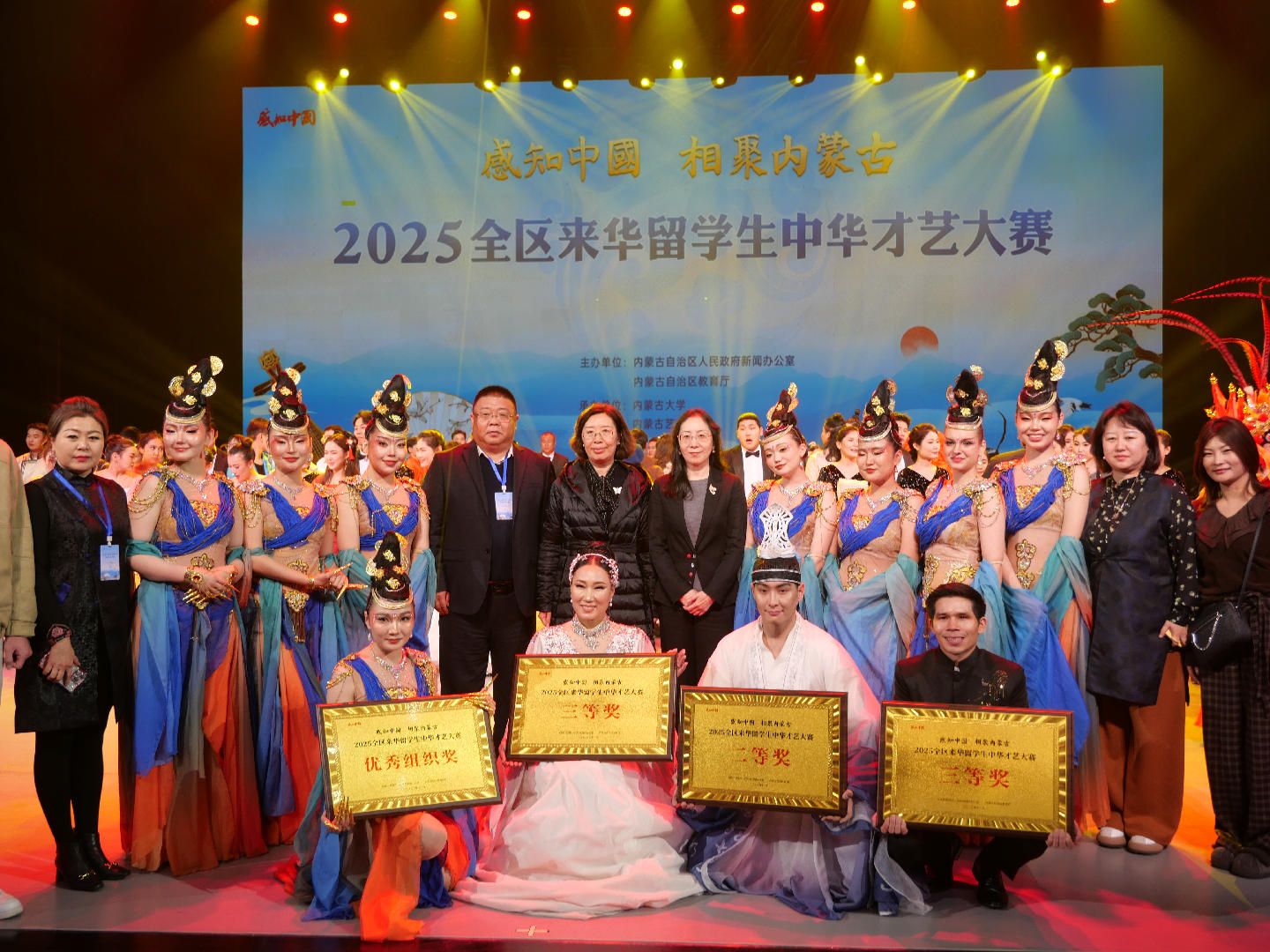 本网讯 11月30日晚,由内蒙古自治区人民政府新闻办公室、内蒙古自治区教育厅联合主办的“感知中国 相聚内蒙古”2025全区来华留学生中华才艺大赛决赛暨颁奖仪式在内蒙古艺术剧院举行。pp电子荣获二等奖1项、三等奖2项和“优秀组织奖”。副校长贾美林出席活动。