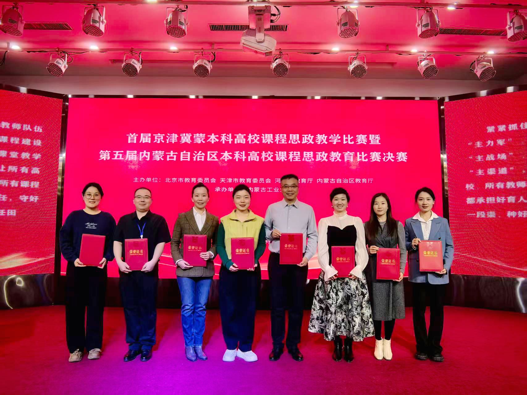 本网讯 12月21日,由北京市教育委员会、天津市教育委员会、河北省教育厅、内蒙古自治区教育厅联合主办的首届京津冀蒙本科高校课程思政教学比赛暨第五届内蒙古自治区本科高校课程思政教育比赛决赛在呼和浩特市举行。pp电子参赛教师荣获特等奖1项、一等奖2项、二等奖5项。pp电子党委委员、副校长公茂果出席决赛颁奖典礼。