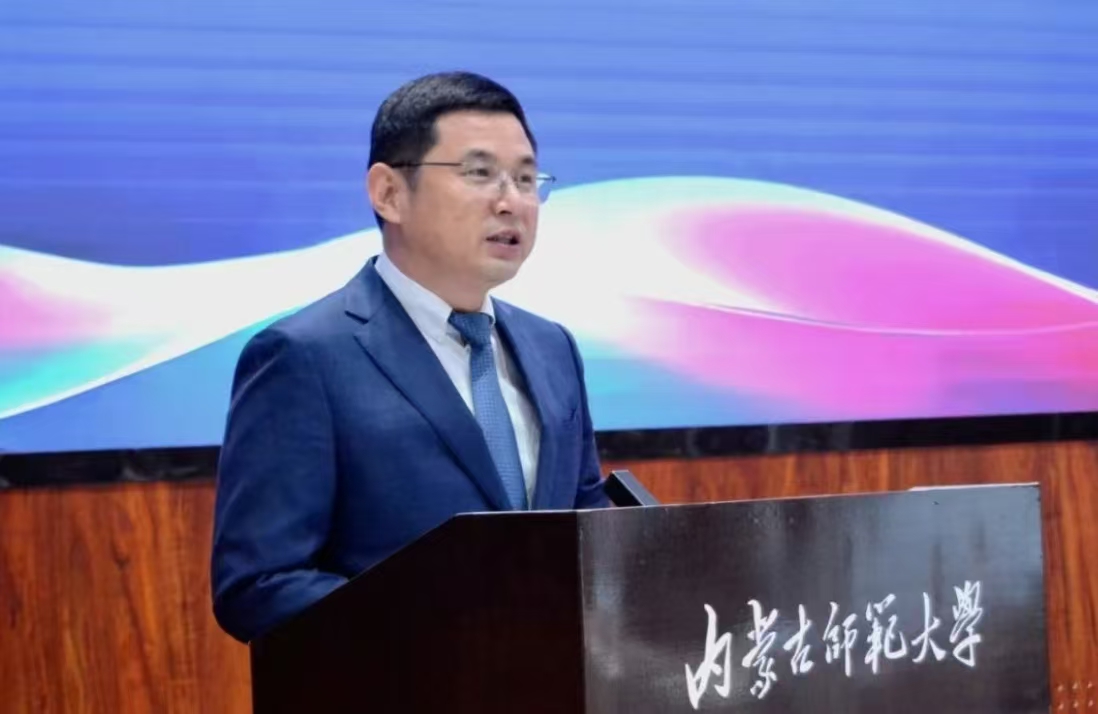 联盟成员单位代表、包头师范学院党委书记韩伟新致辞。他谈到,联盟的成立,为我们搭建了一个交流合作、资源共享、协同创新的优质平台。在各成员单位的共同努力下,联盟充分发挥教师教育协作共同体的优势,为推进自治区教师教育事业高质量发展奠定了坚实基础;精心组织师范生技能大赛,为全区的师范生专业学生提供了展示自我、提升能力的舞台;积极筹办培训研讨活动,有效推动了全区高校教师培训队伍专业化发展;特别策划教育教学年会,吸引了众多的教育专家、教师和研究生参与,对全区师范生的培养和相关专业教师的发展起到了促进作用。在未来的发展中,联盟各成员单位将进一步推动资源共享,优势互补,协同共进,交融创新,为推进教师教育和基础教育高质量发展,建设教育强区贡献智慧力量。