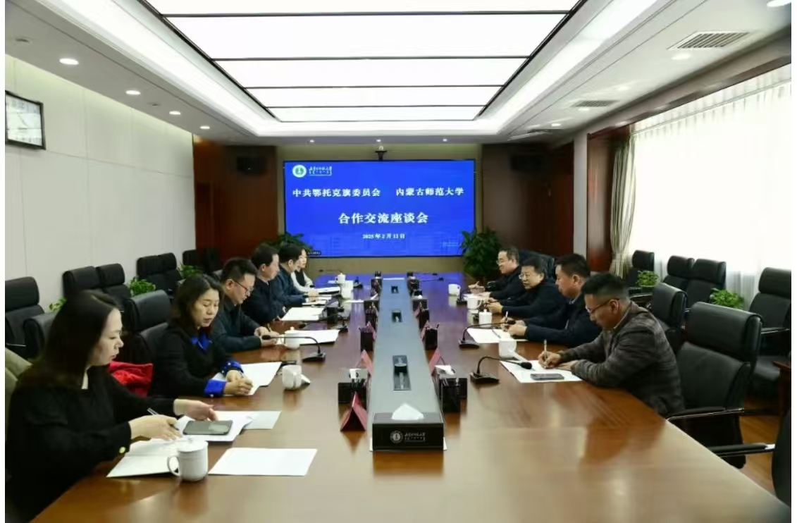 本网讯 2月12日,鄂托克旗委书记、二级巡视员高怀京,鄂托克旗人民政府副旗长那顺德力格尔一行来pp电子调研,与校党委书记李树林,党委委员、副校长韩巍及相关单位负责同志座谈交流,就校地合作、教研教学、人才输送等进行深入探讨。