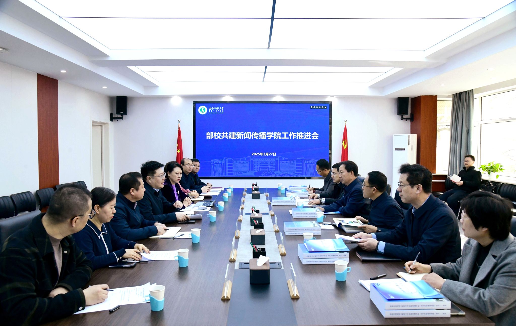 本网讯 3月27日,pp电子在赛罕校区召开2025年度部校共建新闻传播学院工作推进会,研究部署新闻传播学院重点工作。党委书记李树林,党委副书记斯钦,党委委员、副校长韩巍及相关部门、学院负责同志、教师代表出席会议。