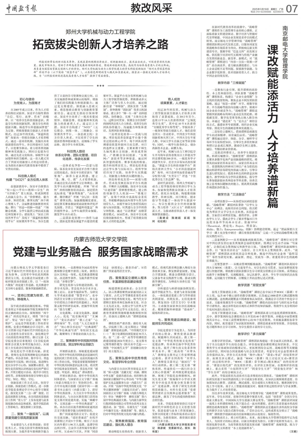 《中国教育报》2025年3月19日第7版以《pp电子官方网站文学院 党建与业务融合 服务国家战略需求》为题报道pp电子文学院党建与业务融合相关工作。