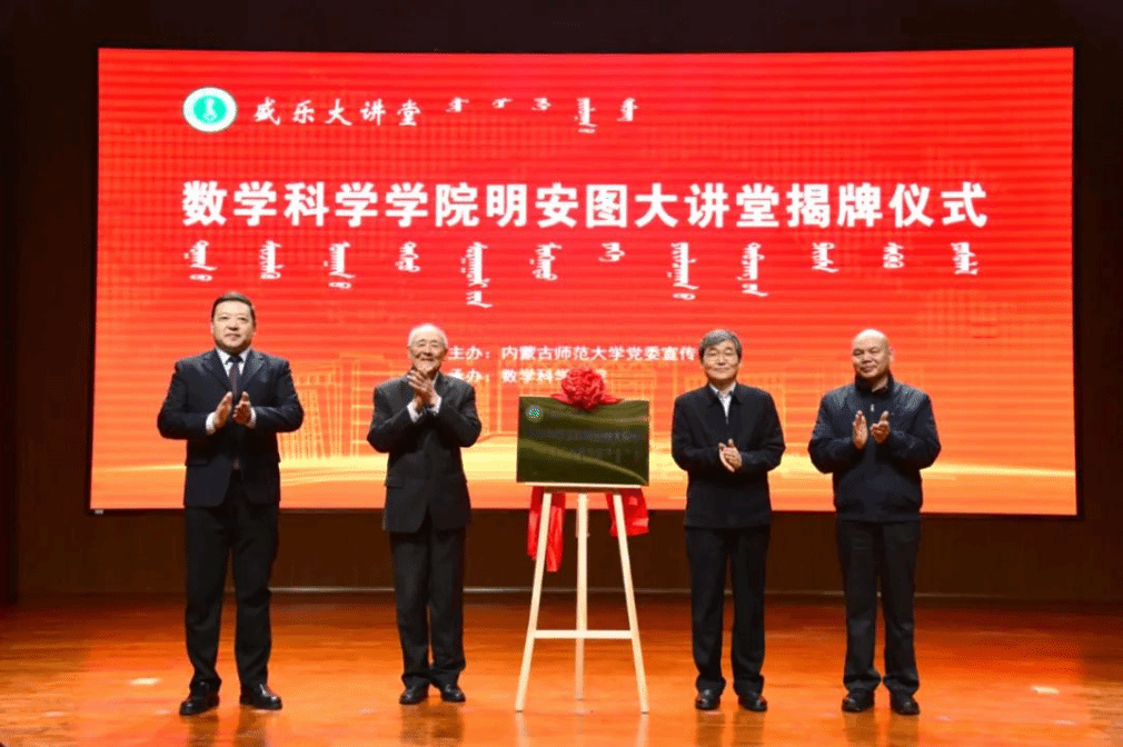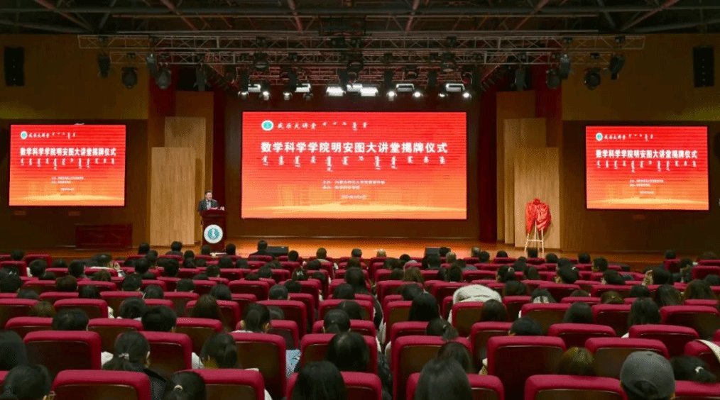 本网讯 近日,由学校宣传部主办、数学科学学院承办的pp电子官方网站盛乐大讲堂·数学科学学院明安图大讲堂揭牌仪式暨学术报告会在盛乐校区图书馆二楼报告厅举行。内蒙古广播电视台卫视节目制作传播中心明安图纪录片总导演牛玉玺,学校相关部门负责同志,数学科学学院负责同志、全体教师及学生代表500余人参加活动。