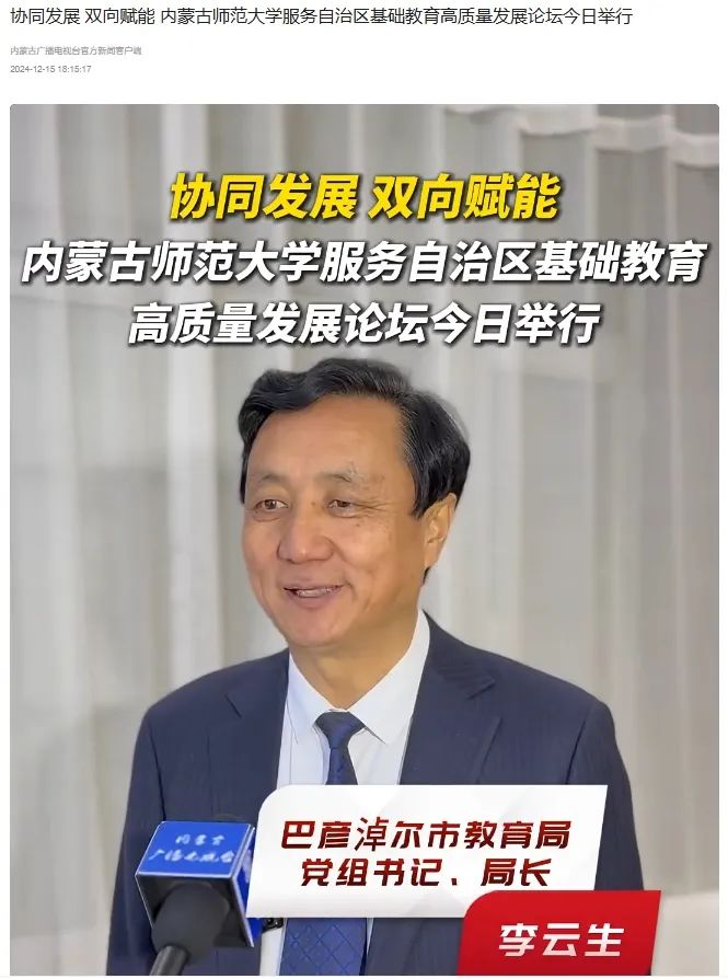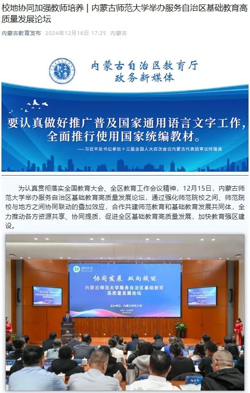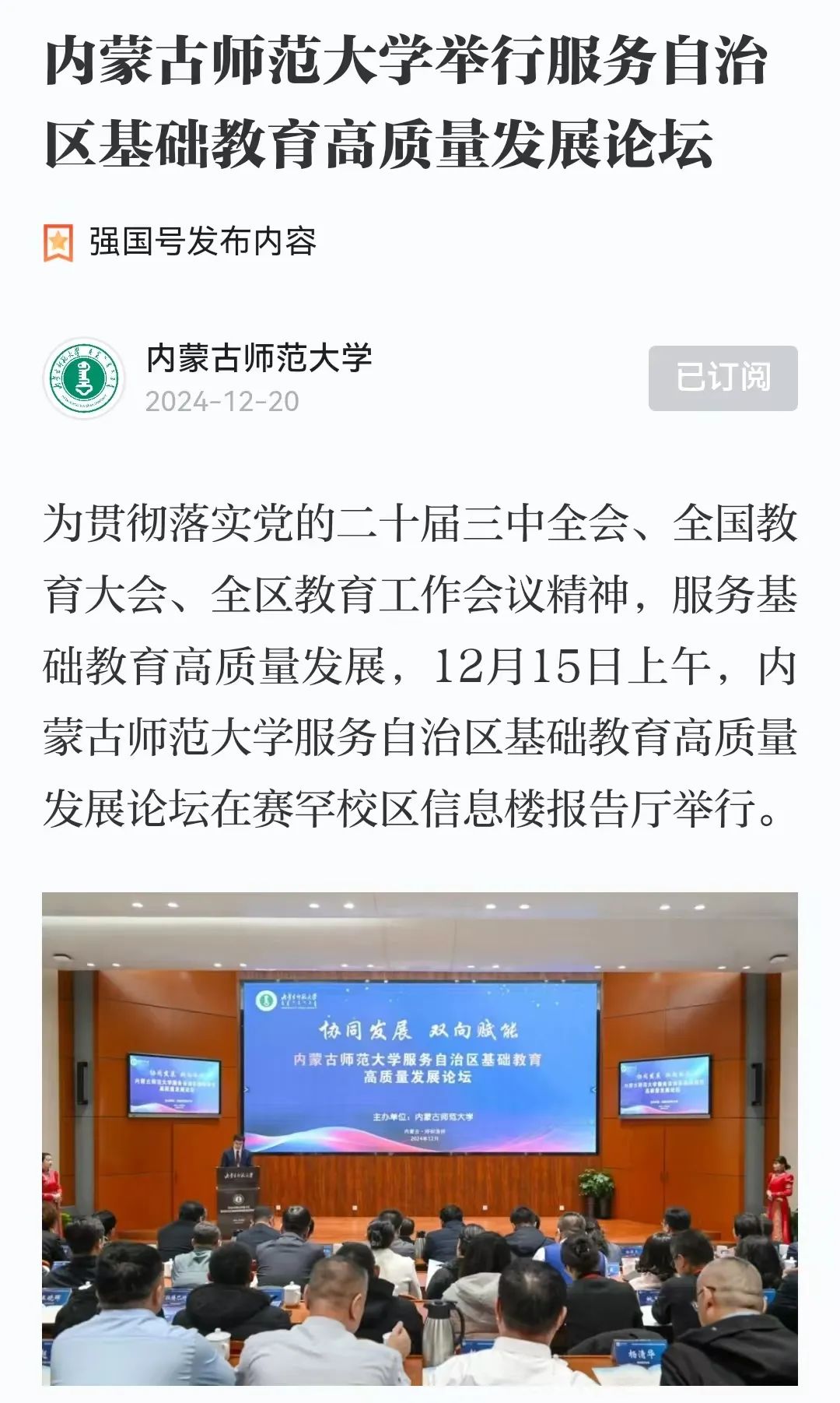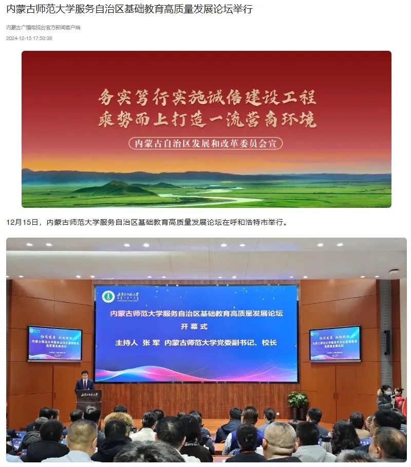 本网讯 12月15日上午,pp电子官方网站服务自治区基础教育高质量发展论坛举行,引发社会各界广泛关注和热烈反响。截至12月24日,全网相关媒体报道总量100余条,吸引了包括新华社、中国教育报、中国教育新闻网、学习强国等央级媒体,内蒙古日报、内蒙古广播电视台官方新闻客户端、内蒙古教育发布等省级媒体在内的各级各类媒体发文近40篇,累计阅读量超150万次。