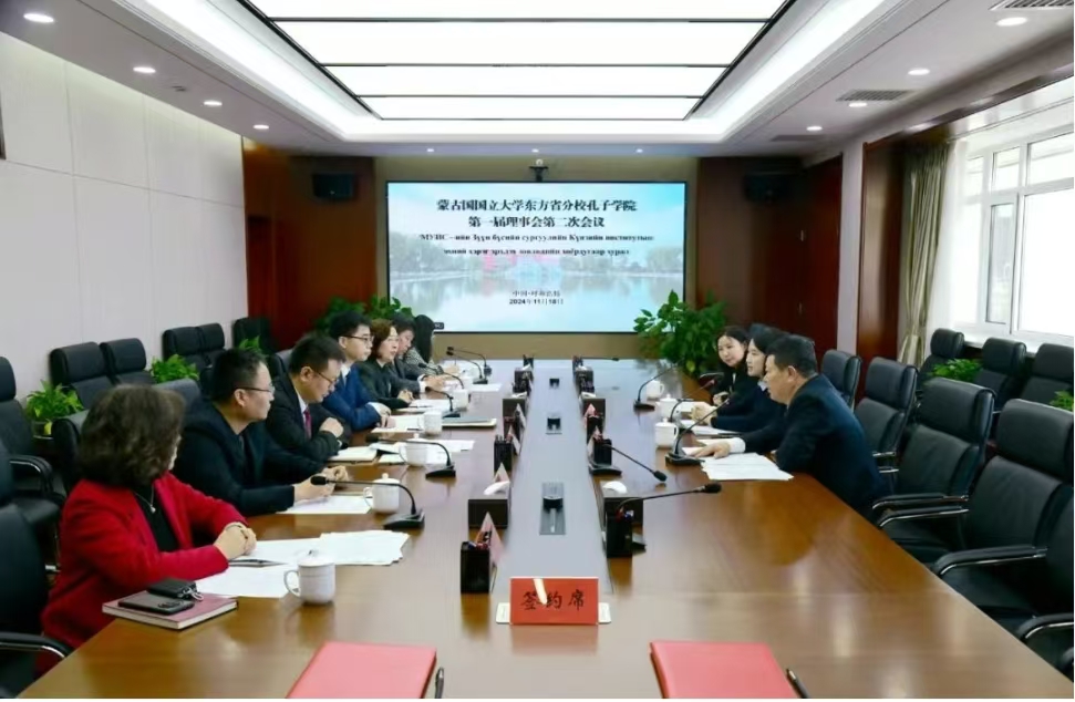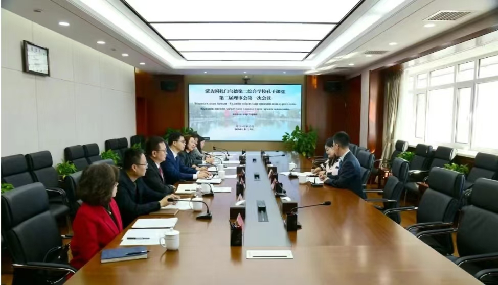同日,蒙古国扎门乌德市第二综合学校孔子课堂第二届理事会第一次会议在pp电子召开。校党委副书记、校长、孔子课堂中方理事长张军,副校长、孔子课堂中方副理事长贾美林,蒙古国扎门乌德市第二综合学校校长、孔子课堂蒙方理事长巴图图雅出席会议。孔子课堂中蒙双方负责人及pp电子相关部门负责同志参加会议。