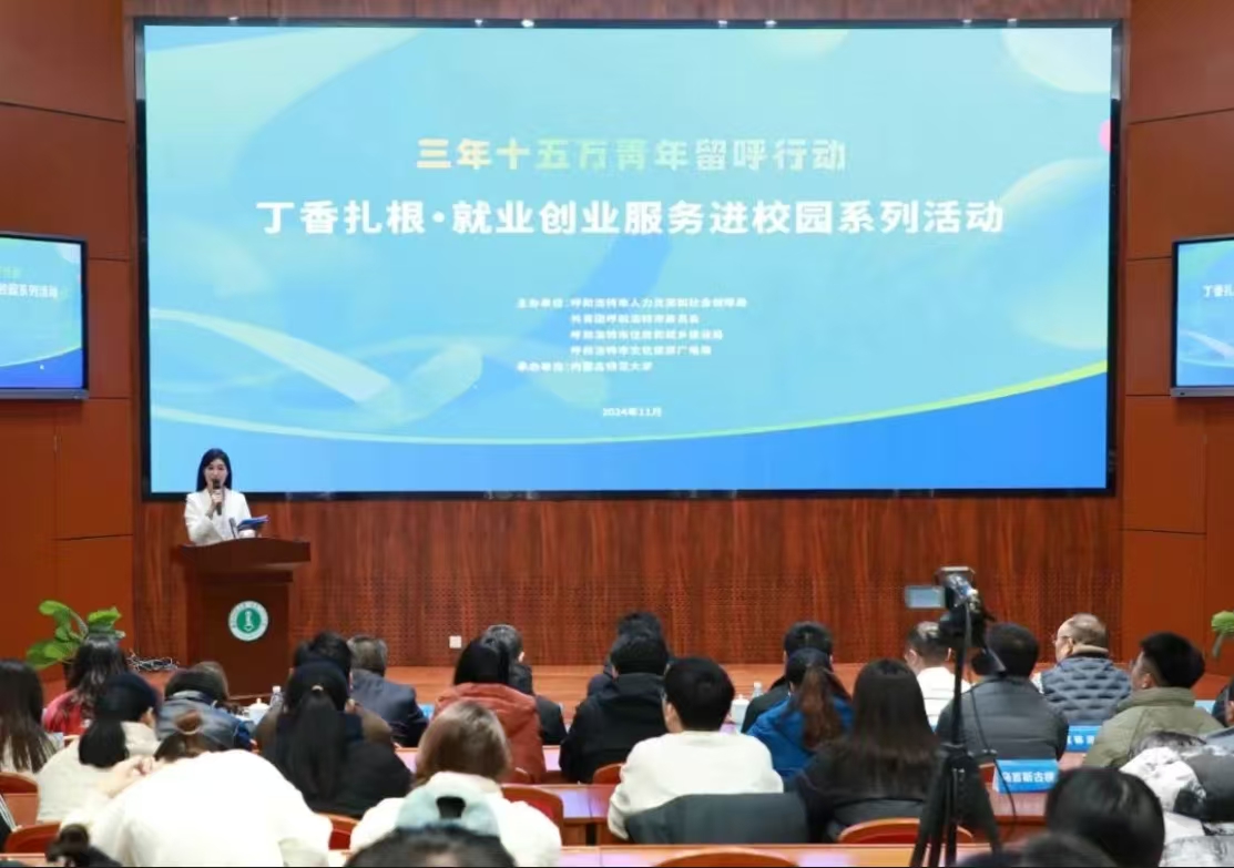 本网讯 为进一步促进大学生实现更加充分和高质量的就业与创业,支持呼和浩特市实施“十万大学生留呼工程”和“十五万青年留呼行动”,11月28日,由呼和浩特市人力资源和社会保障局联合市住房和城乡建设局、共青团市委、市文化和旅游局共同主办,pp电子承办的“丁香扎根·就业创业服务进校园系列活动”在赛罕校区信息楼报告厅举办。