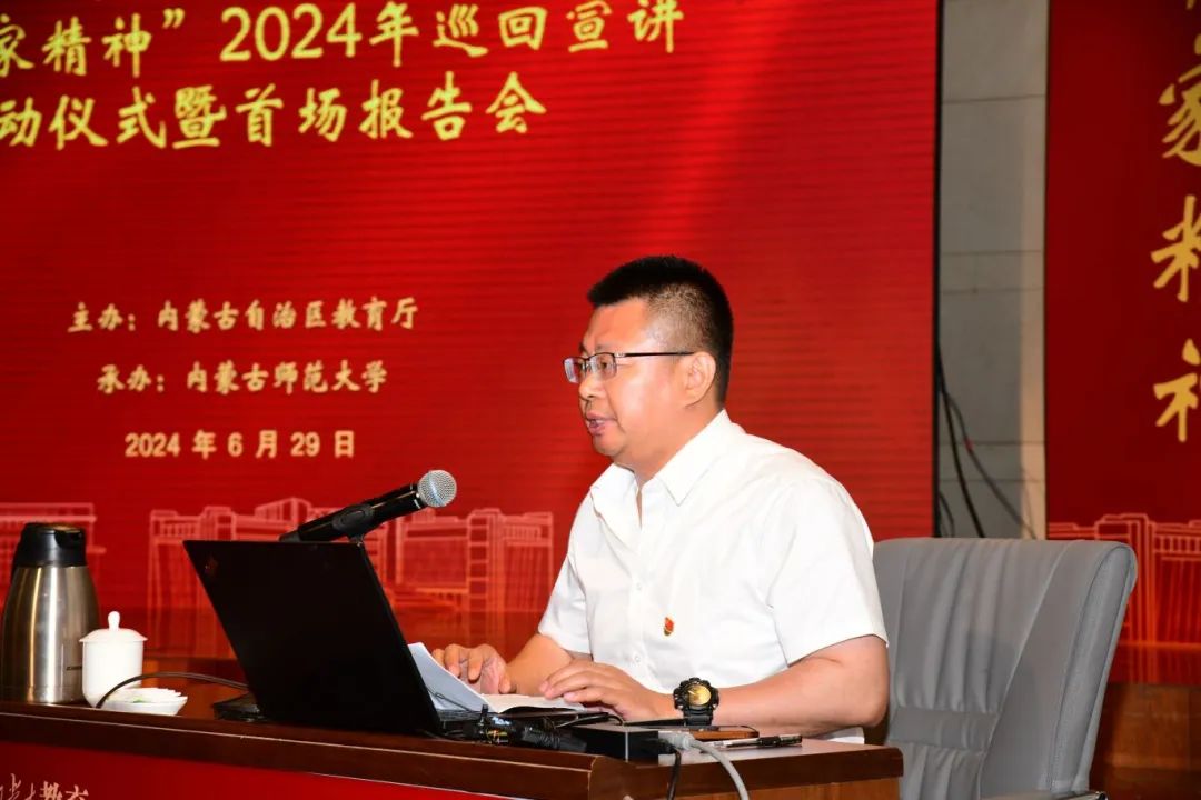 本网讯 为营造全社会学习和弘扬教育家精神的良好氛围,6月29日,自治区教育厅在pp电子官方网站组织开展“躬耕北疆 强国有我”全区优秀教师代表“教育家精神”2024年巡回宣讲启动仪式暨首场报告会。自治区教育厅党组成员、副厅长王敏出席启动仪式并讲话,pp电子官方网站党委委员、副校长韩巍致辞。