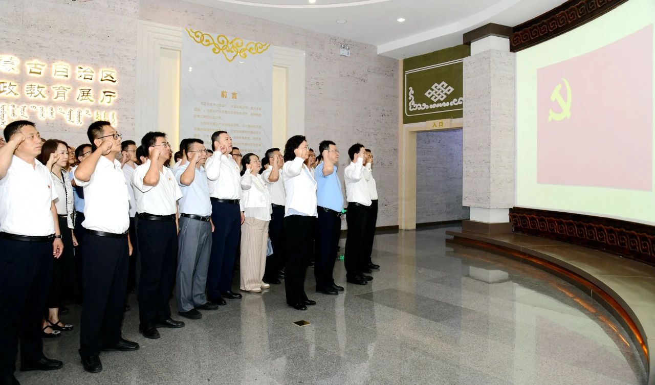 本网讯 7月25日,党委书记李树林,党委副书记张海峰,党委委员、纪委书记、驻校纪检监察组组长赵晓东带领全校副处级以上干部赴内蒙古自治区博物院开展党纪学习教育主题党日活动,集体参观党纪学习教育展,并重温入党誓词。