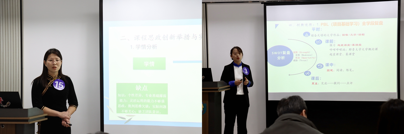 本次比赛共有来自19个学院的38名教师参赛,参赛教师分别对所授课程进行了教学设计创新汇报,并对所授课程的性质与意义、学生学习情况、教学过程中的问题以及课程创新的思考与实践进行了分析。专家评委根据大赛主题与规则,针对参赛教师的现场汇报和创新报告进行了提问,并提出了建设性意见。
