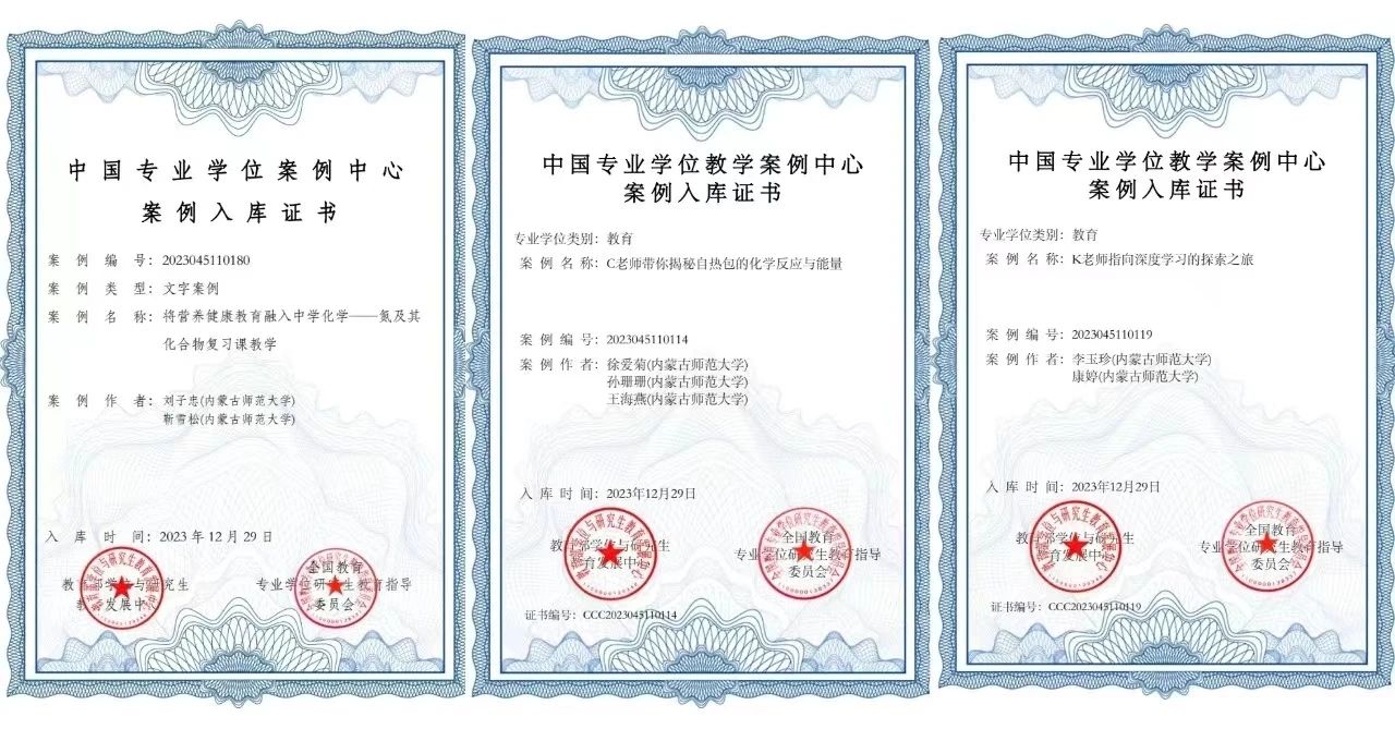 本网讯 近日,全国教育专业学位研究生教育指导委员会(以下简称“教指委”)下发了《关于公布第五届教育专业学位教学案例征集工作评审结果的通知》(教育发便字〔2023〕23号)。pp电子化学与环境科学学院刘子忠编写的《将营养健康教育融入中学化学——氮及其化合物复习课教学》、徐爱菊编写的《C老师带你揭秘自热包的化学反应与能量》、李玉珍编写的《K老师指向深度学习的探索之旅》等3篇教学案例正式被中国专业学位案例中心收录入库。2014年以来,pp电子教师积极参与案例征集活动,截至目前,共有14篇教学案例被中国专业学位案例中心案例库收录。