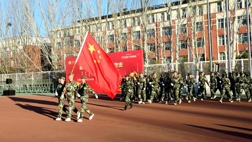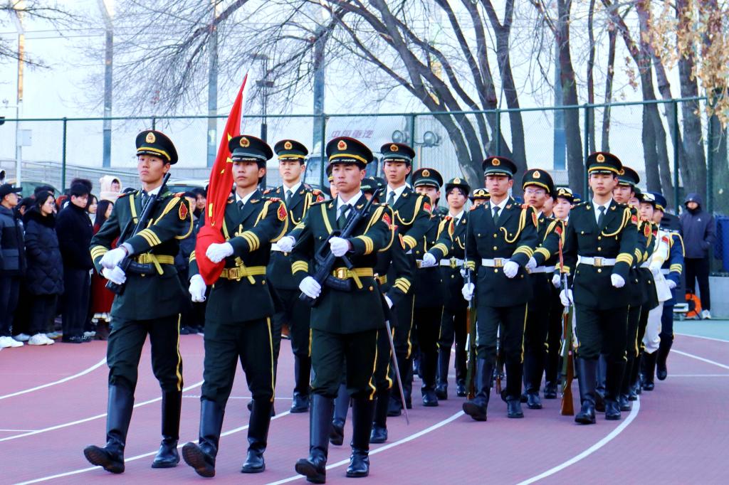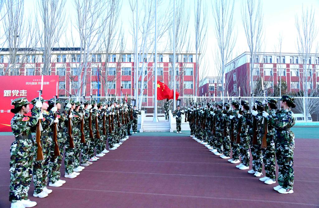清晨的阳光洒在宽阔的操场上,国旗护卫队的同学们身着统一的制服,迈着铿锵有力的步伐,护送鲜艳的五星红旗至升旗台。伴随着雄壮激昂的《义勇军进行曲》,鲜艳的五星红旗冉冉升起,在灿烂的晨光中随风飘扬。全体师生齐唱国歌,行注目礼。