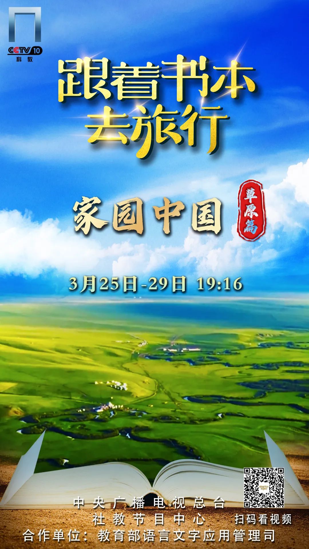 CCTV—10 科教频道《跟着书本去旅行》“家园中国·草原篇”系列节目播出时间如下: