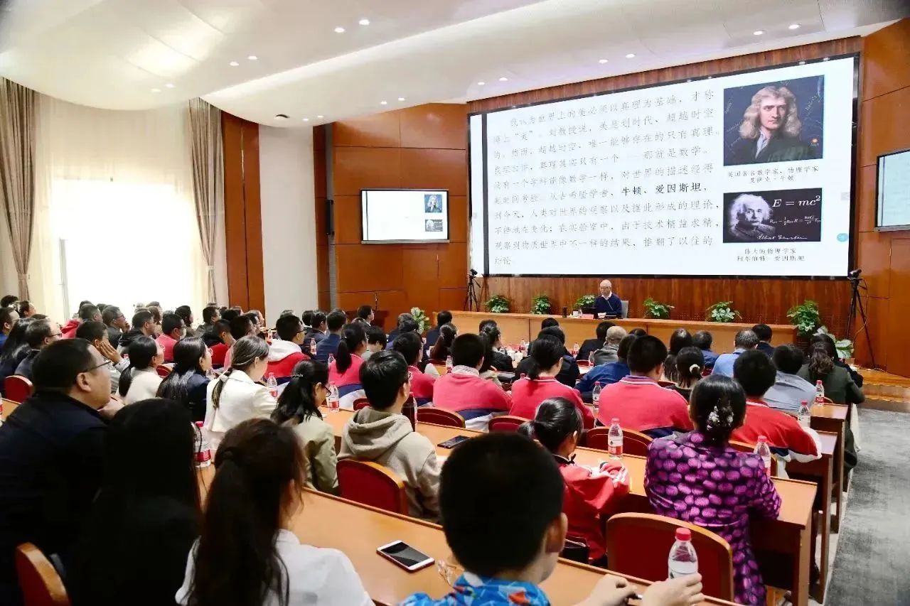 本网讯 10月28日下午,国际著名数学家、菲尔兹奖首位华人得主、中国科学院外籍院士丘成桐先生应邀来pp电子作了题为“数学之美与应用”的学术报告。自治区政协副主席、自治区党委教育工委书记、教育厅厅长杨劼及教育厅相关职能处室负责同志,pp电子领导李树林、张军、宫箭、斯钦、贾美林,内蒙古自治区应用数学中心主任阿拉坦仓出席报告会。来自内蒙古大学、pp电子官方网站、内蒙古工业大学、呼和浩特民族学院、pp电子官方网站附属中学的300余名师生聆听了报告。