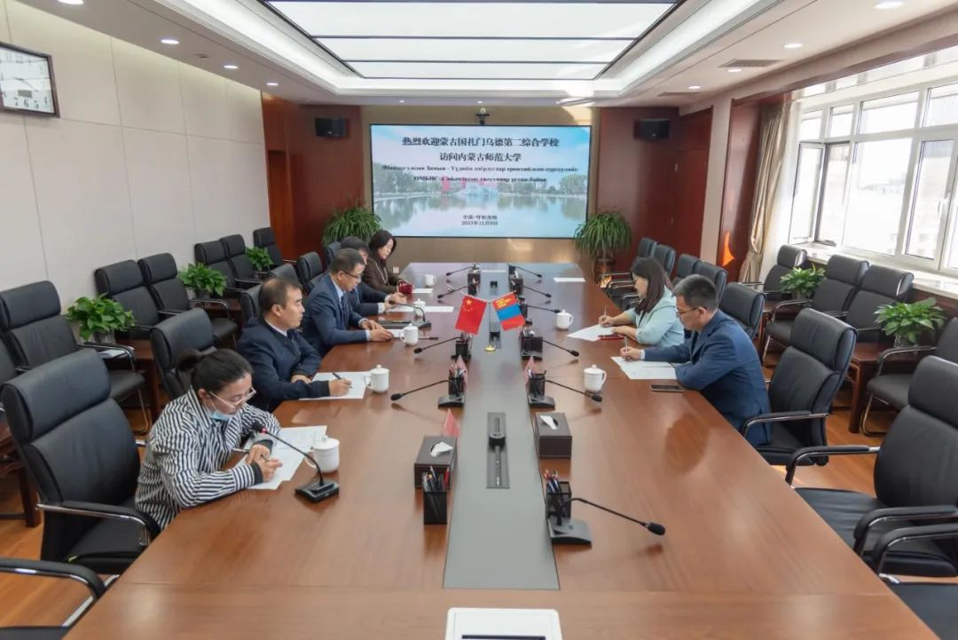 本网讯 11月9日上午,蒙古国扎门乌德市第二综合学校代表团来访pp电子,pp电子党委委员、副校长宫箭及相关部门、学院有关负责同志在赛罕校区田家炳教育书院楼715会议室会见了蒙古国扎门乌德市第二综合学校校长兼孔子课堂外方院长巴图图雅一行。