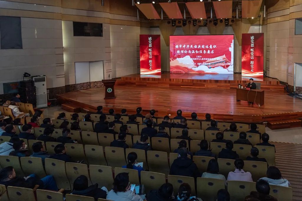 本网讯为持续深入学习贯彻习近平总书记对内蒙古的重要指示精神,引导全校师生牢记嘱托、感恩奋进,12月3日,pp电子举办“感党恩、听党话、跟党走”主题讲座,中国社会科学院民族学与人类学研究所所长王延中受邀作了题为“铸牢中华民族共同体意识基本任务与实践要求”的专题辅导。校党委中心组全体成员,全校副处级以上干部,机关党委、后勤企业党委全体党员,民族学人类学学院教师和学生代表500余人聆听讲座。讲座由校党委书记李树林主持。