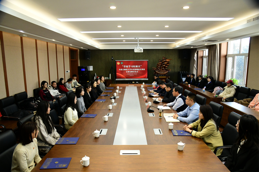 本网讯为深入学习贯彻习近平新时代中国特色社会主义思想,全面贯彻党的二十大精神,贯彻落实习近平总书记在内蒙古考察期间的重要讲话重要指示精神,更好地发挥理论宣讲统一思想、凝聚力量、鼓舞斗志的作用,12月1日,“草原学习轻骑兵”pp电子官方网站共青团理论宣讲团在赛罕校区文史楼举行聘任仪式。