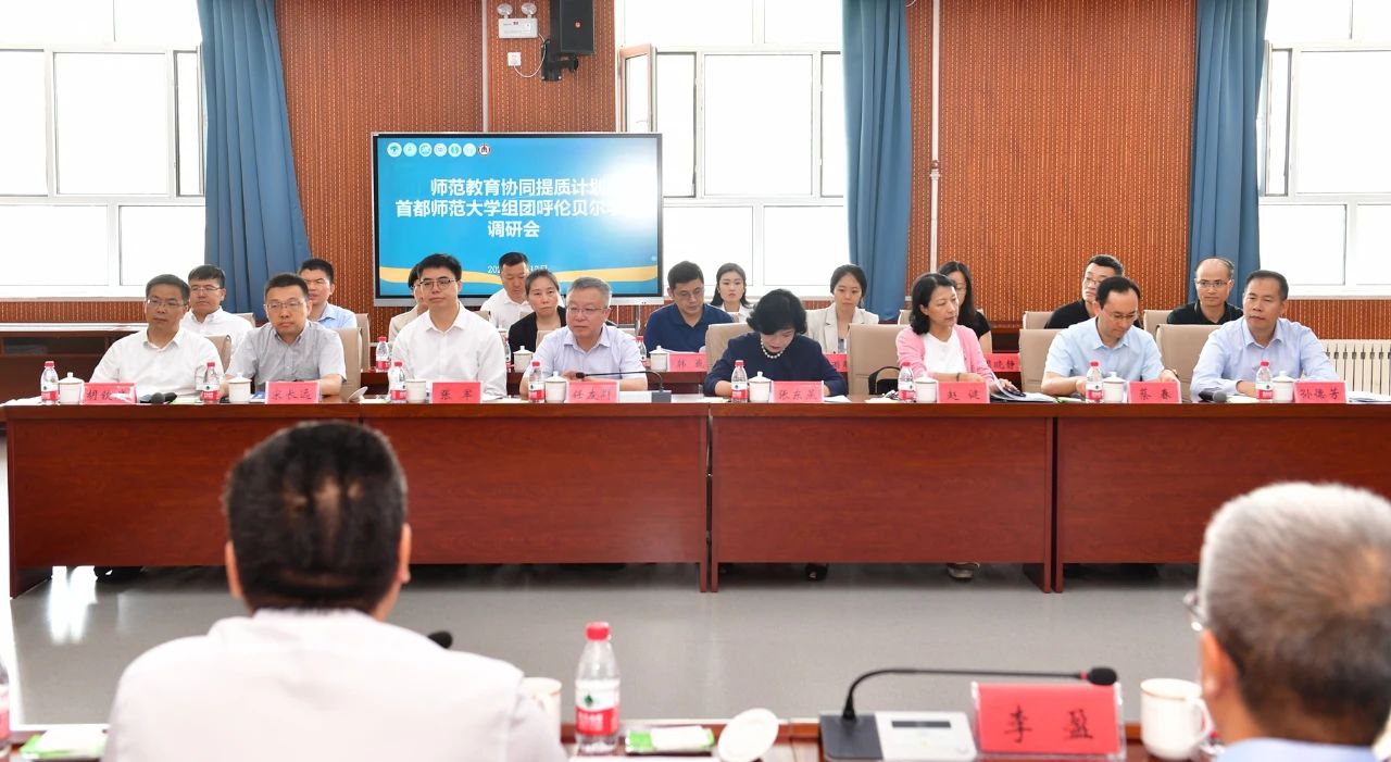 本网讯 近日,教育部教师工作司司长任友群、师范教育协同提质计划专家工作组、首都师范大学组团“1+M”院校负责人一行赴呼伦贝尔学院考察调研。自治区党委教育工委委员、教育厅党组成员、副厅长李盈,自治区教育厅教师工作处处长王俊威陪同调研。pp电子党委副书记、校长张军,党委委员、副校长韩巍及教务处、质量监测与评估中心负责同志等参加调研。