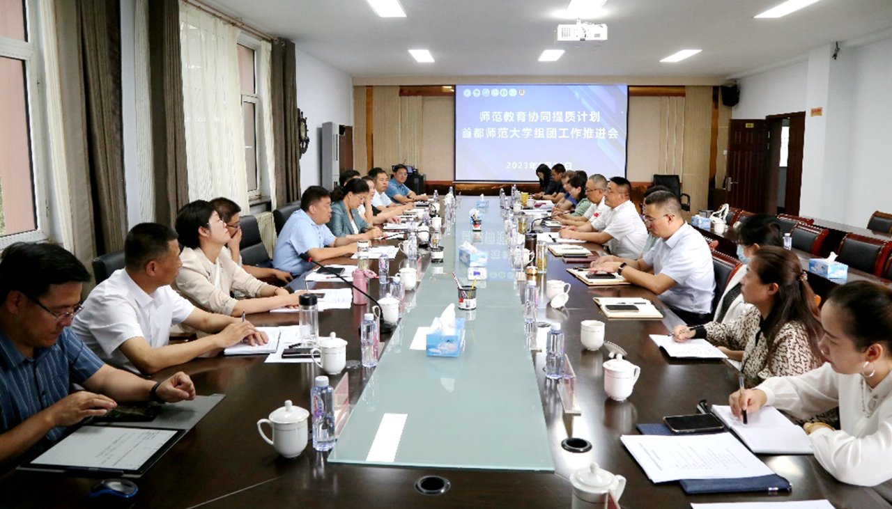 本网讯 近日,教育部师范教育协同提质计划首都师范大学组团2023年暑期教学管理专题论坛暨工作推进会在集宁师范学院召开。首都师范大学党委常委、副校长李小娟,pp电子党委委员、副校长韩巍,呼伦贝尔学院副校长尹立军,集宁师范学院党委副书记、校长刘春及7所组团高校协同提质计划项目联系人参会。会议由首都师范大学教师教育中心主任、教务处副处长王海燕主持。