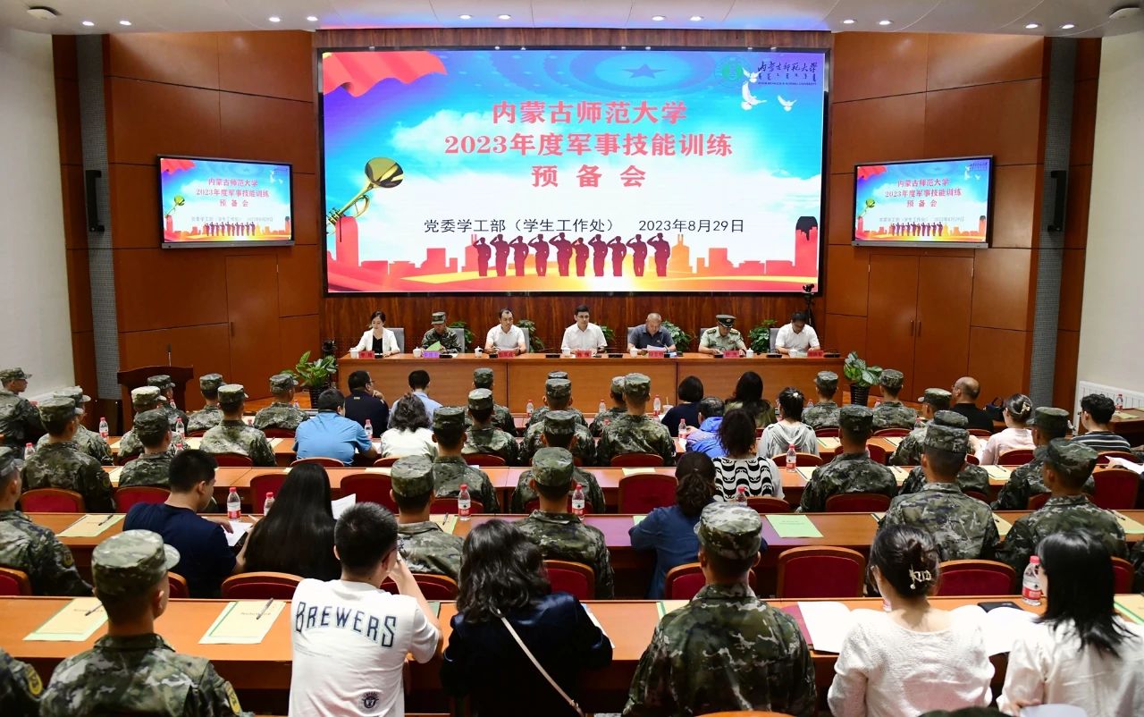 8月29日下午,pp电子在赛罕校区信息楼报告厅召开2023年度学生军事技能训练预备会。武警内蒙古总队呼和浩特市支队中校副参谋长孙涛、武警内蒙古总队呼和浩特市支队中校政治教导员董建平、武警内蒙古总队呼和浩特市支队上尉参谋李阔、武警内蒙古总队呼和浩特市支队上尉中队长赵龙欢、武警内蒙古总队呼和浩特市支队中尉排长赵雄飞以及pp电子党委委员、副校长韩巍出席会议。承训部队官兵,各学院有关负责同志、辅导员及相关部门工作人员参加会议。会议由党委学工部部长(学生工作处处长)陆全明主持。