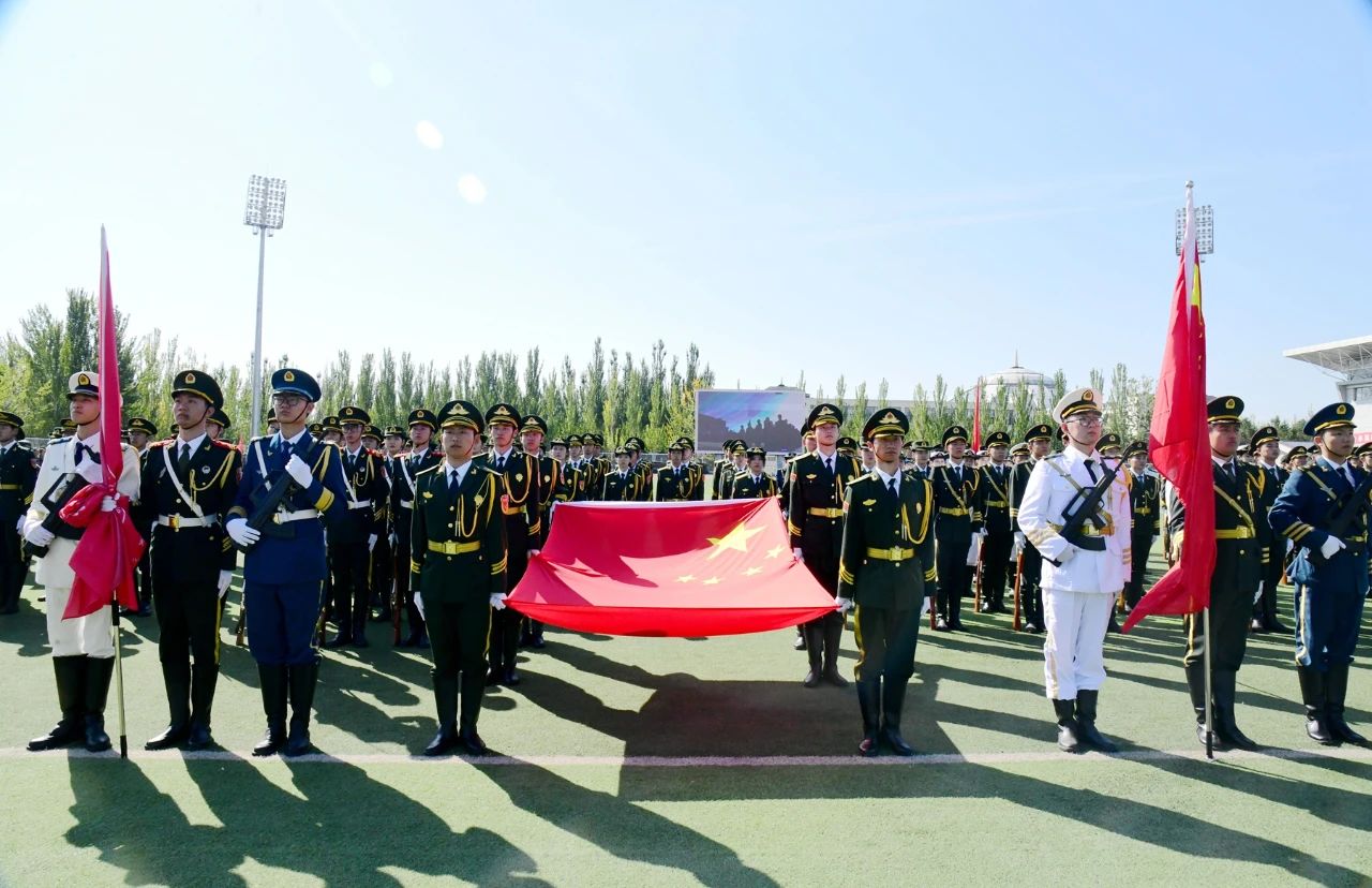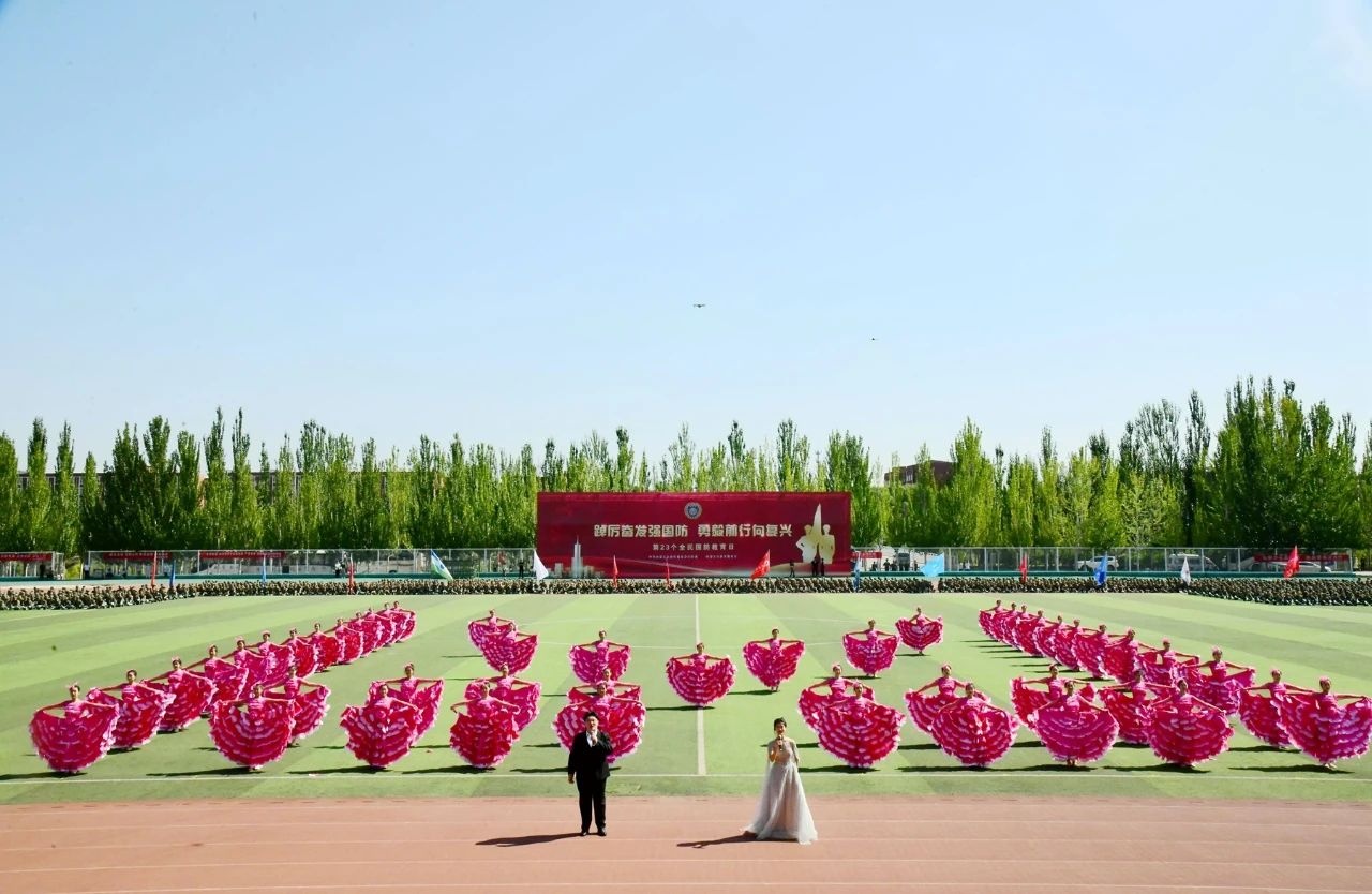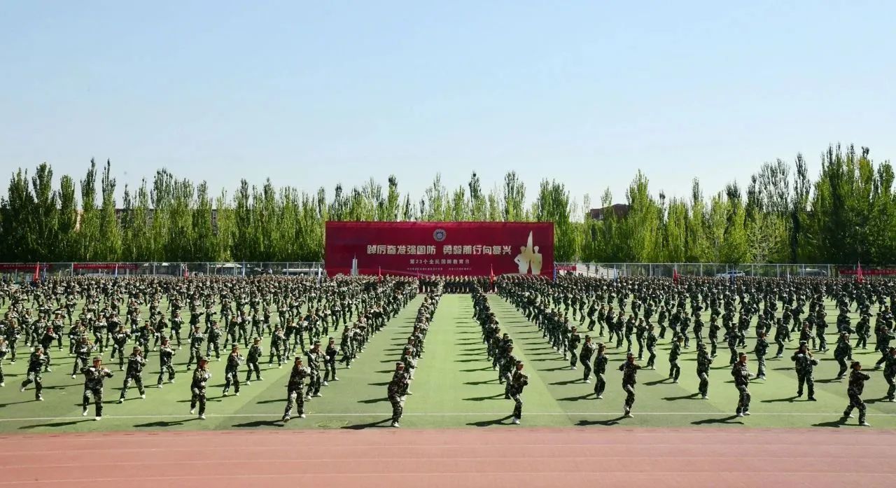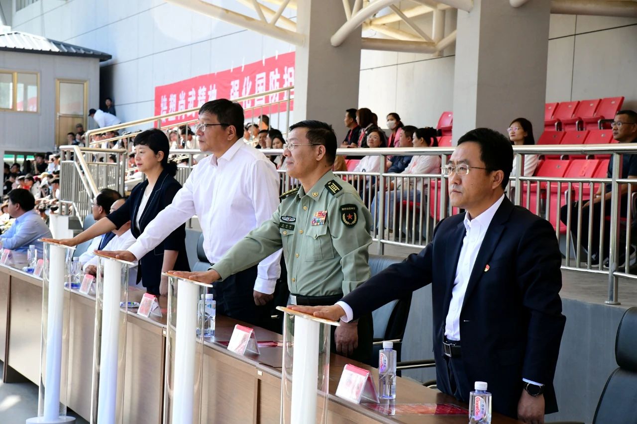 本网讯 为进一步强化全民“强国必须强军,军强才能国安”的思想认识,使关心国防、热爱国防、建设国防、保卫国防成为全社会的思想共识和自觉行动,为实现中国梦强军梦凝聚强大力量,9月16日上午,自治区党委宣传部、自治区教育厅、内蒙古军区政治工作局联合pp电子官方网站举办的“踔厉奋发强国防 勇毅前行向复兴”——第23个全民国防教育日主题活动在盛乐校区东操场举行。自治区党委宣传部副部长、外宣办主任江新辉,自治区教育厅副厅长王敏,内蒙古军区政治工作局大校主任王华林,pp电子党委委员、副校斯钦以及驻呼各高校有关负责同志出席活动。pp电子相关部门负责同志、驻呼各高校师生代表以及部分市民朋友共7500余人参加活动。