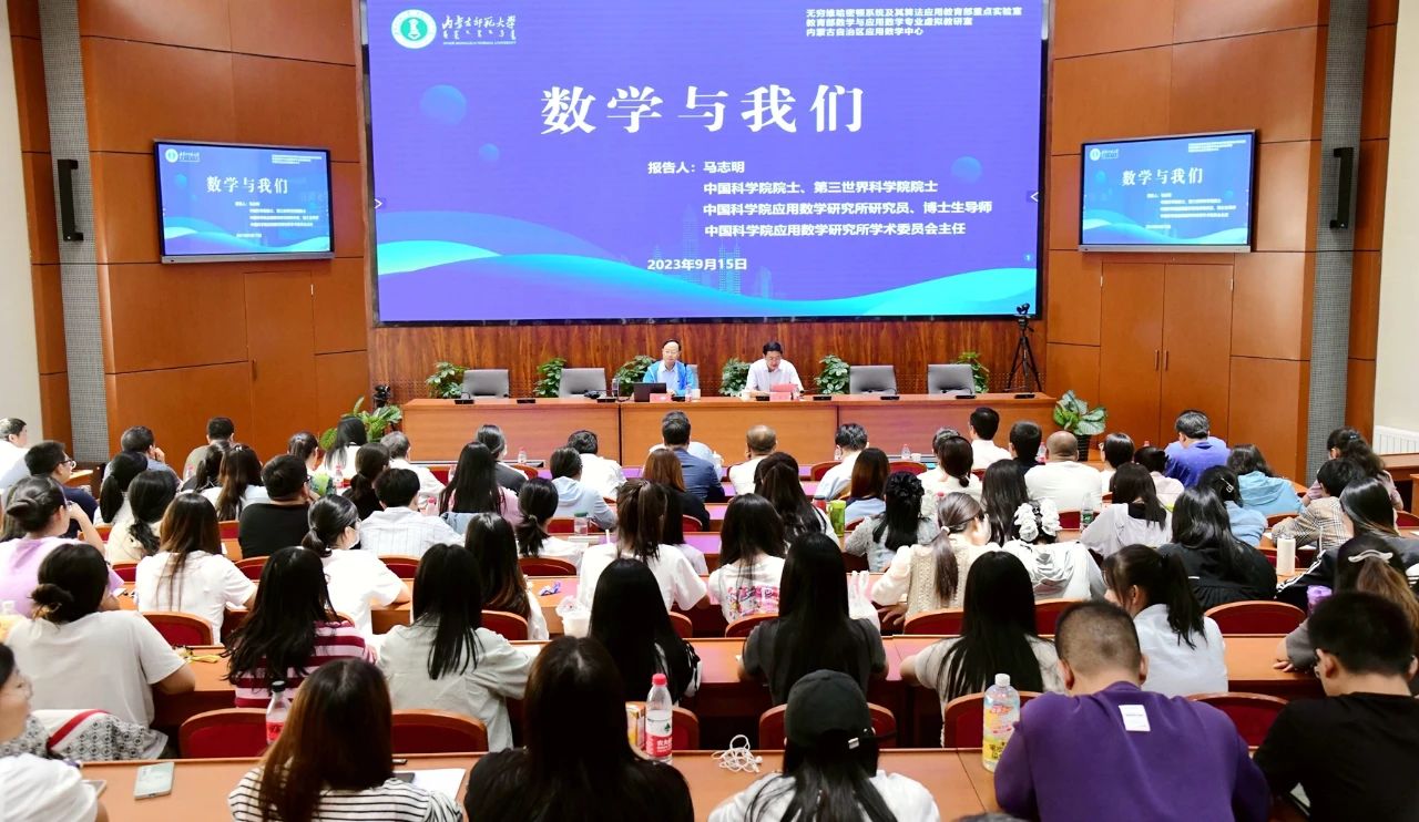 本网讯 9月15日,中国科学院院士马志明应邀来pp电子作了题为“数学与我们”的学术报告。pp电子原党委书记阿拉坦仓等200余名师生聆听了报告。报告会由数学科学学院院长扎其劳主持。