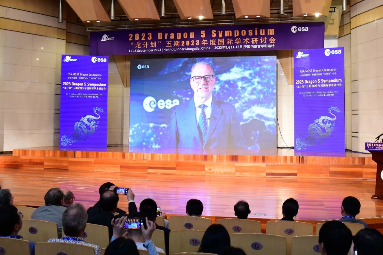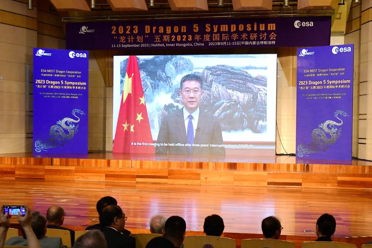 12日上午,大会开幕式在赛罕校区音乐厅举办。中国科学技术部副部长张雨东,欧洲空间局局长约瑟夫·阿施巴赫,欧洲空间局对地观测部主任西蒙妮塔·切利以视频录制形式为大会致开幕辞。