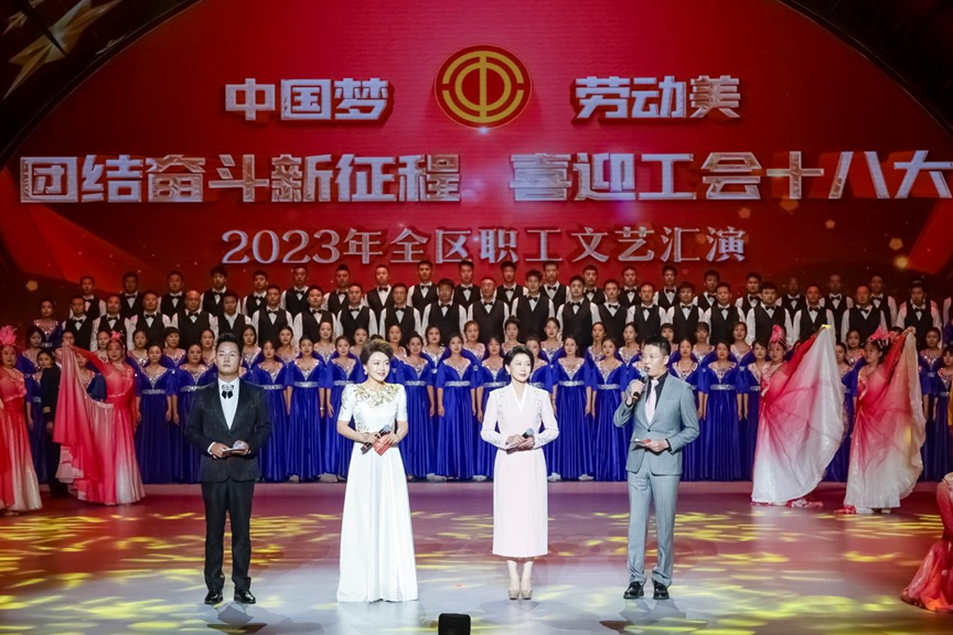 本网讯 9月19日晚,“中国梦·劳动美——团结奋斗新征程 喜迎工会十八大”2023年全区职工文艺汇演在内蒙古人民会堂精彩上演。自治区妇联党组成员、副主席郑剑虹,自治区总工会党组成员、副主席傲木格,自治区总工会党组成员、副主席吴燕平,自治区总工会二级巡视员王俊等出席活动。全区劳模工匠思政培训班学员、全国及全区劳动模范、五一奖章获得代表,各级工会干部,各行业一线职工群众代表等千余人参加活动。