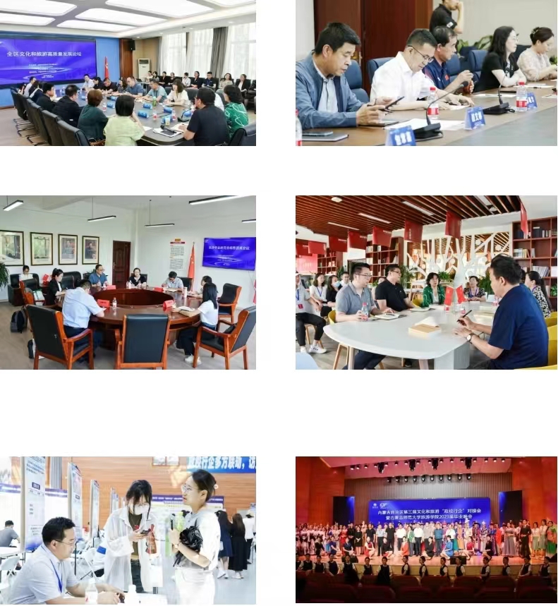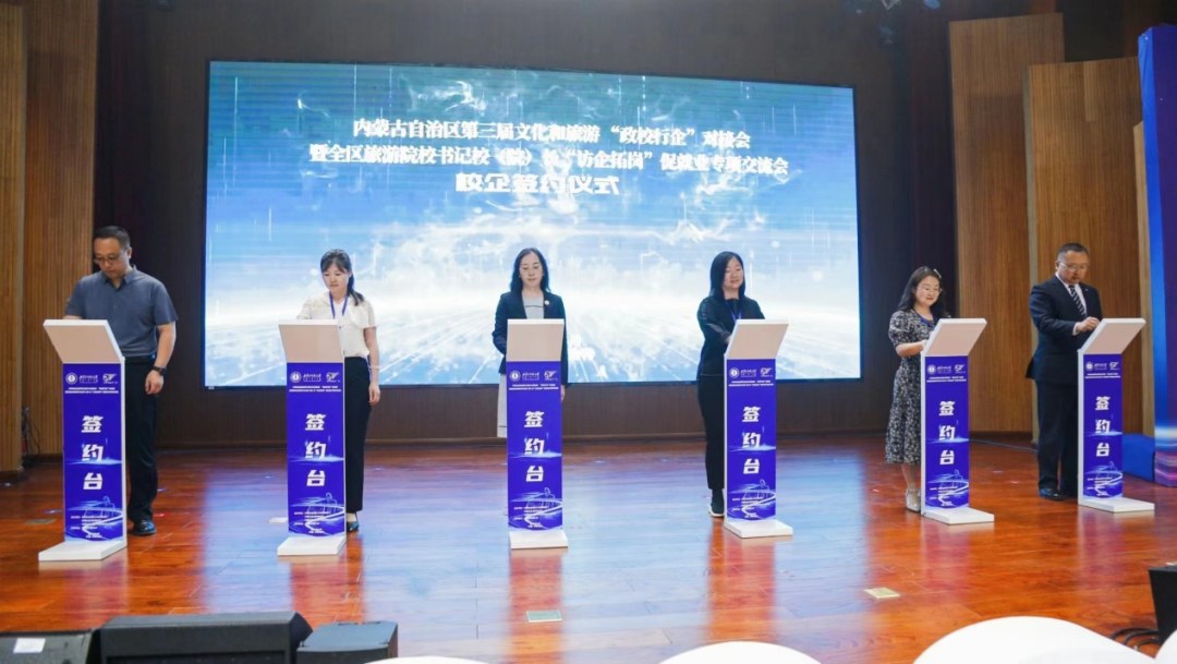 本届会议旨在搭建“政校行企”合作新平台,拓展旅游管理专业学生实习就业的绿色通道,加强旅游院校与旅游企业的交流合作,促进产学研深度融合与协同发展。会上,部分盟市文化和旅游局局、文旅企业代表、旅游院校代表进行了宣传推介。9家院校与9家文旅企业进行了校企合作签约,为应届毕业生提供工作岗位1000余个。