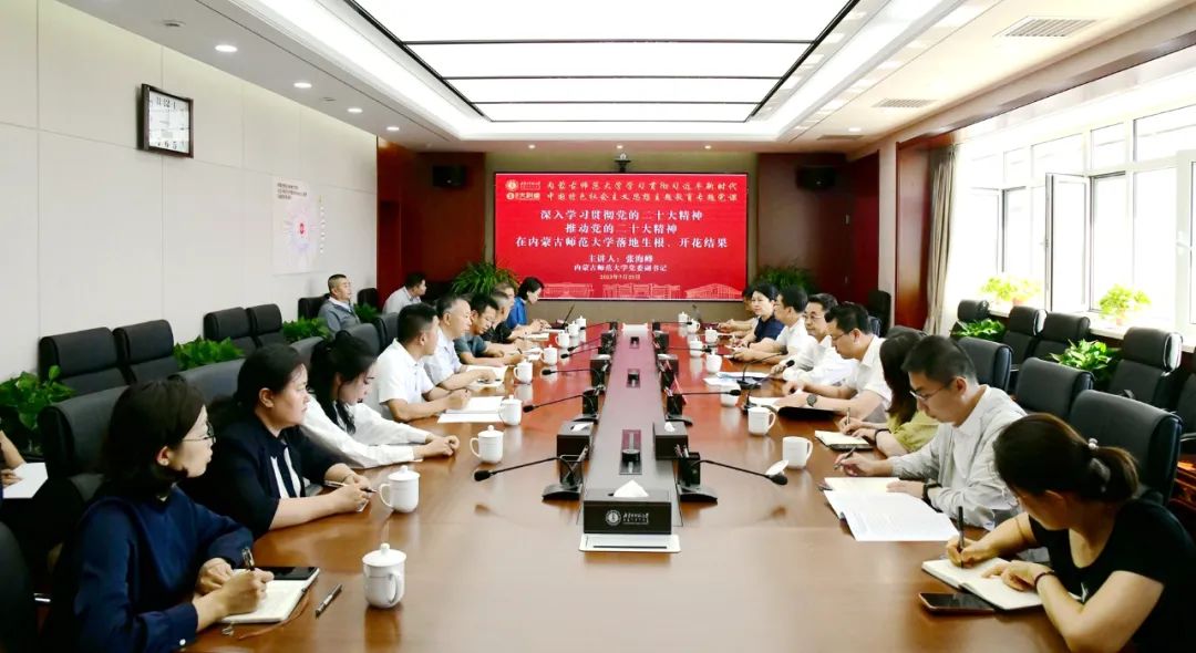 本网讯 7月25日,根据学校主题教育工作安排,党委副书记张海峰为党委组织部、党委宣传部、党委统战部、工会、离退休教职工工作处等单位讲授了题为“深入学习贯彻党的二十大精神,推动党的二十大精神在pp电子官方网站落地生根、开花结果”的专题党课。党委宣传部部长王志强主持党课。