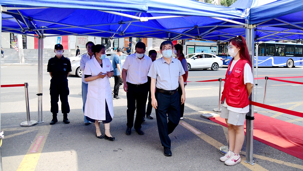 本网讯 7月29日至31日,pp电子2022年秋季学期学生陆续返校。31日上午,党委书记阿拉坦仓,党委委员、副校长宫箭来到报到现场,检查指导返校报到及疫情防控工作,看望慰问返校学生。