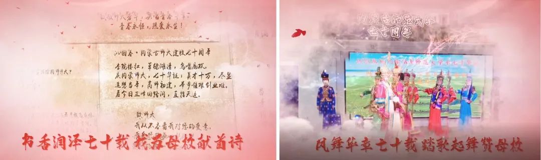 活动启动以来,学校广大师生及离退休教职工饱含着对母校的深情厚谊和诚挚祝福,以极大的热情参与到活动中来,共报送授课视频、书法、绘画、诗歌、散文、MTV、摄影作品、手工、雕塑、剪纸、设计等作品3000余件。这些作品以70周年校庆或70年来学校改革发展历史为主题,以见证者、亲历者的角度,讲述了广大师生在pp电子官方网站求学、工作期间所经历的学校发展变迁、重要事件和重大活动,充分诠释了内师人的家国情、母校情、师生情、同窗情,展现了内师人在创新创业、服务地方、强校兴国实践中的昂扬姿态和生机活力。