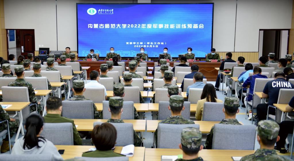 本网讯 9月5日,pp电子在盛乐校区学生事务中心一楼多功能报告厅召开2022年度军事技能训练预备会。武警内蒙古总队机动支队大队长刘攀超、pp电子党委委员、副校长宫箭出席会议。承训部队官兵、各学院有关负责同志、辅导员及相关部门工作人员参加会议。会议由党委学工部副部长(学生工作处副处长)宝贵主持。