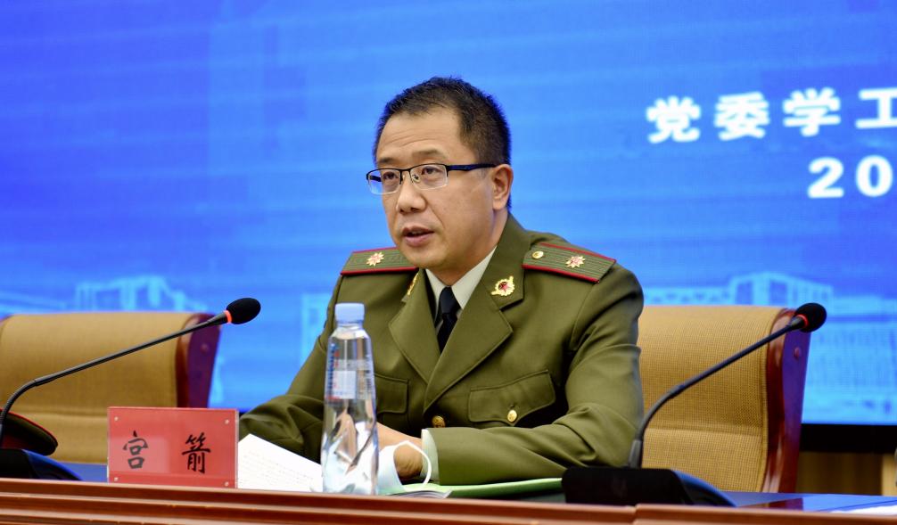 宫箭代表学校对承训部队官兵的到来表示热烈欢迎,强调了在喜迎党的二十大和pp电子建校70周年背景下开展军事训练的特殊意义和重要性,就学校往年军训工作作了简要回顾,并对今年的军训工作提出三点要求:一要高度重视,精心组织;二要严格要求,科学施训;三要注重宣传,营造氛围。同时要求相关部门和部队教官密切协作,积极协助教官做好军训相关工作。
