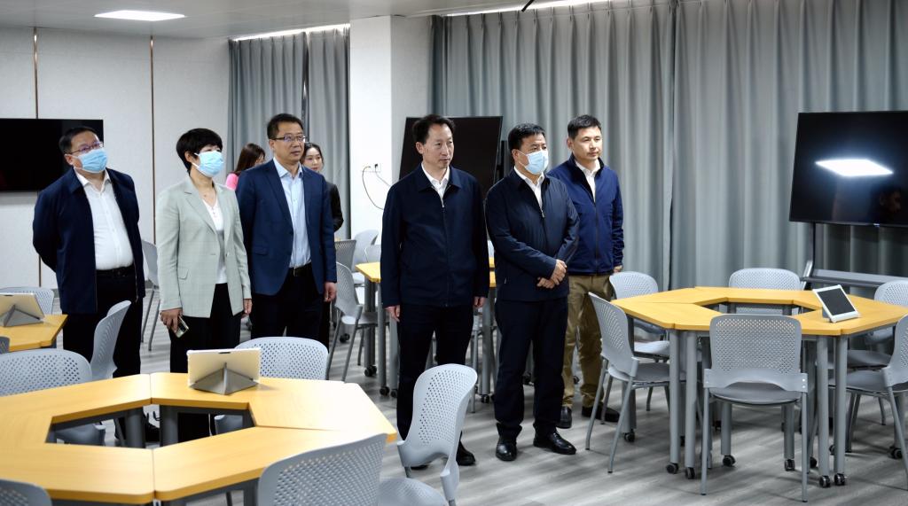 调研中,孙国铭一行实地考察了新闻传播学院、国际设计艺术学院、学生事务中心、教师教育实训中心等地。