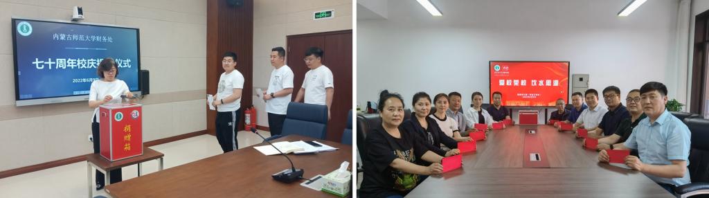 截至目前,后勤服务集团、纪委、监察专员办公室、心理学院、物理与电子信息学院、数学科学学院、化学与环境科学学院、生命科学与技术学院、音乐学院、附属学校、蒙古学学院、国际交流学院、继续教育学院、国际设计艺术学院、科学技术史研究院、经济管理学院、文学院、党委组织部、党委统战部、工会、国有资产管理处、财务处、学工部(学生工作处)、校庆办公室等单位先后开展了“我为母校献爱心”活动。