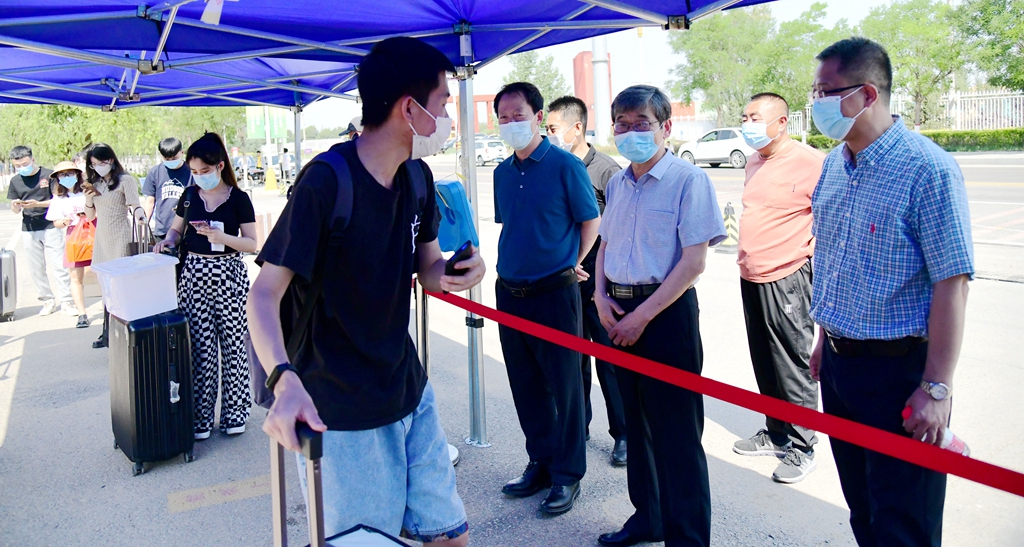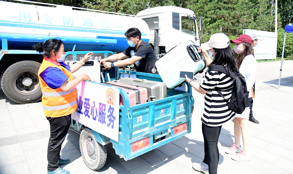 连日来,学校仔细对学生公寓、餐厅、浴室等校园场所进行消杀,翘首以盼同学们的到来。入校通道有专人核验学生48小时核酸检测证明、行程码、健康码,并依次进行体温检测,对行李箱进行集中消杀等。入校后,学校安排了专门的摆渡车辆运送学生到宿舍,并在等候区放置了绿豆汤等消暑饮品。“一走进校门感觉太亲切了,学校的安排特别暖心。能在毕业前和老师、同学们再见上一面很开心,但对于即将结束的大学生活也有很多不舍。”旅游学院大四毕业生金青春说道。