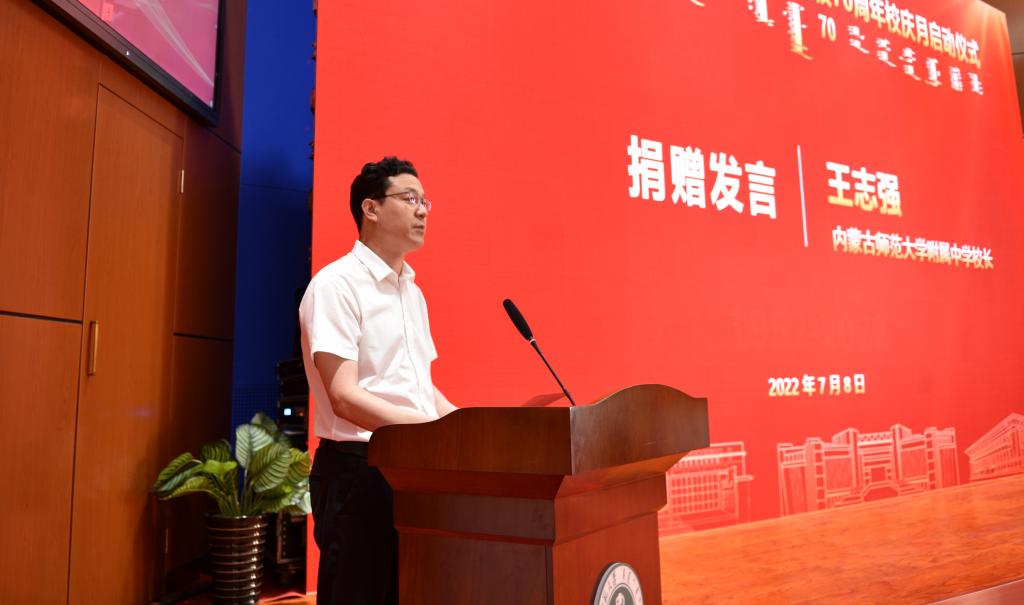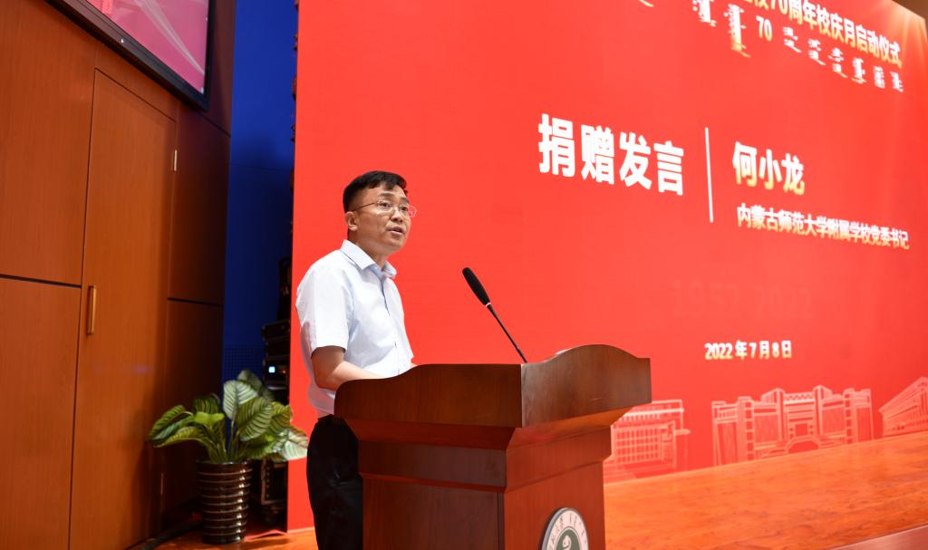 本网讯 7月8日,pp电子在赛罕校区信息楼报告厅举行建校70周年校庆月启动仪式。北京广慧金通教育集团董事长焦殿成,内蒙古兴泰置业集团有限公司总裁高国栋,超星集团执行总裁秦波涛,pp电子党委书记阿拉坦仓,党委委员、副校长张海峰、王来喜,党委委员、组织部部长褚亚申,党委委员、统战部部长吴爱华出席会议。学校副处级以上干部及校庆办、校友会、基金会工作人员、以及各学院校庆联络员参加会议。会议由王来喜主持。