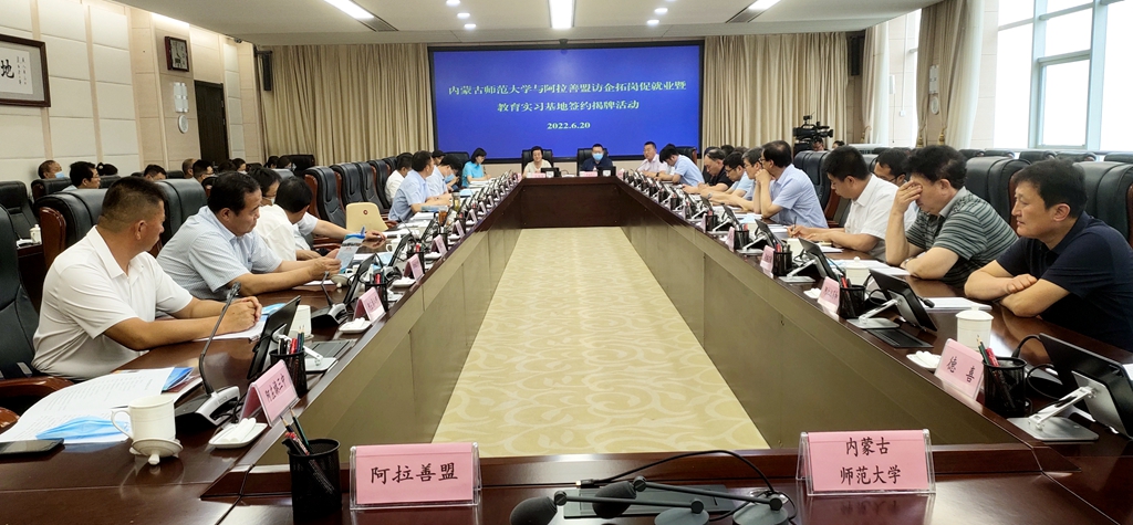 本网讯 6月20日,党委书记阿拉坦仓一行赴阿拉善盟开展“访企拓岗”促就业专项行动,与阿拉善盟委书记代钦座谈交流,并共同为pp电子官方网站教育实践基地揭牌。阿拉善盟委委员、副盟长杨国顺,盟委委员、宣传部部长张宝成,盟委委员、组织部部长韩伟新,盟委委员、秘书长魏治国,pp电子党委委员、副校长王来喜出席座谈会。杨国顺主持座谈会。