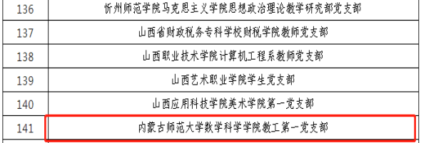 在党支部“党建+”引领业务工作载体下,育人模式结硕果,立德树人显成效。数学科学学院教工第一党支部2019年获批教育部第二批全国党建工作样板党支部培育单位,获批自治区高校“最强党支部”建设单位,获批pp电子官方网站首批“最强党支部”建设单位。2021年,党支部书记毕力格图同志荣获“全区高等学校优秀党务工作者”。