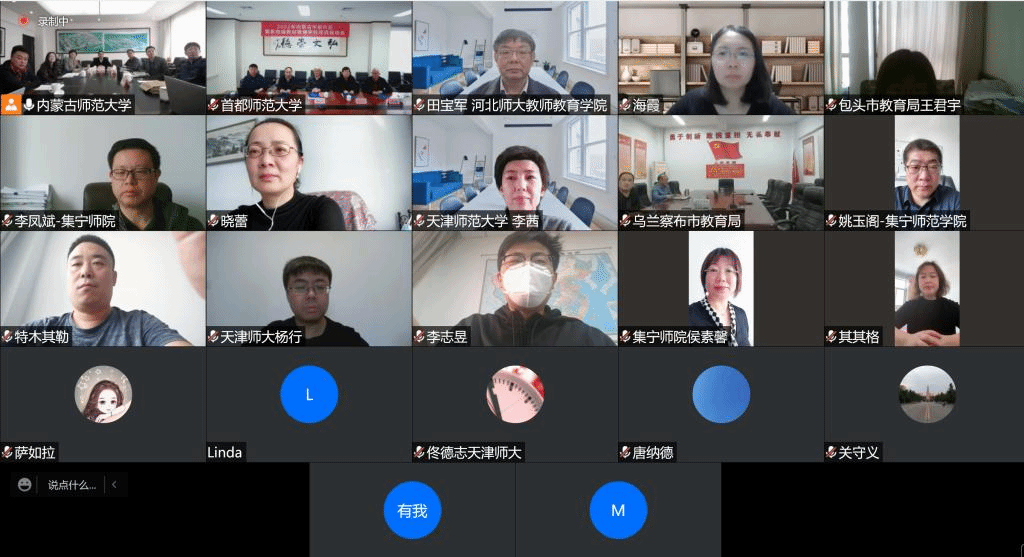 本网讯 3月30日上午,2022年内蒙古中部片区国家统编教材教师学科培训启动会以视频会议的形式召开。内蒙古自治区教育厅教师工作处处长王俊威,首都师范大学党委常委、副校长雷兴山,天津师范大学党委常委、副校长佟德志,河北师范大学党委常委、副校长关守义,集宁师范学院副校长李凤斌,pp电子副校长张海峰出席会议。首都师范大学首师科技教育培训中心主任高立平,继续教育学院、京疆学院党总支书记林广成,人工智能教育研究院常务副院长蔡可,首师科技教育培训中心副主任李佳健;天津市中小学教师继续教育中心常务副主任李茜;河北师范大学教师教育学院院长田宝军,教师教育学院党委副书记、副院长胡海霞;集宁师范学院继续教育学院院长侯素馨;乌兰察布市教育局副局长刘淑敏以及中部片区各盟市教育(教体)局相关科室负责人;pp电子继续教育学院等相关部门负责同志参加会议。会议由pp电子继续教育学院党总支副书记、副院长王利主持。