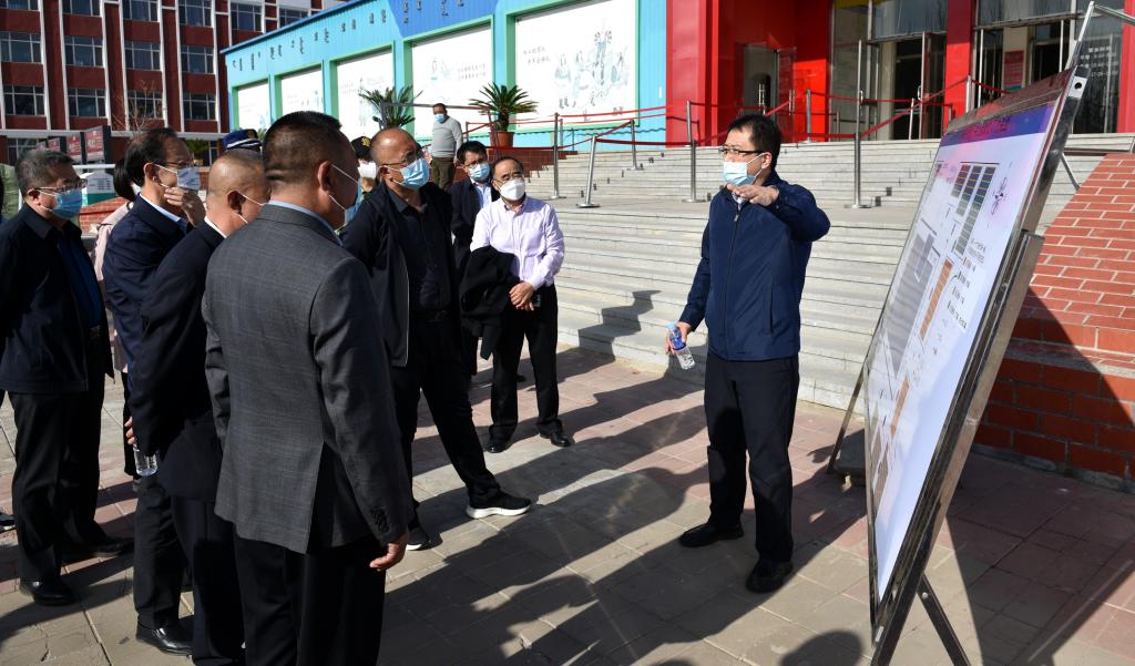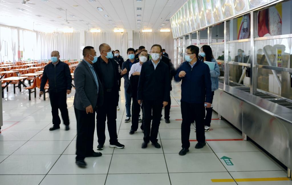 调研队伍一行实地考察了盛乐校区北门、学生食堂、校医院、足球学院等地。